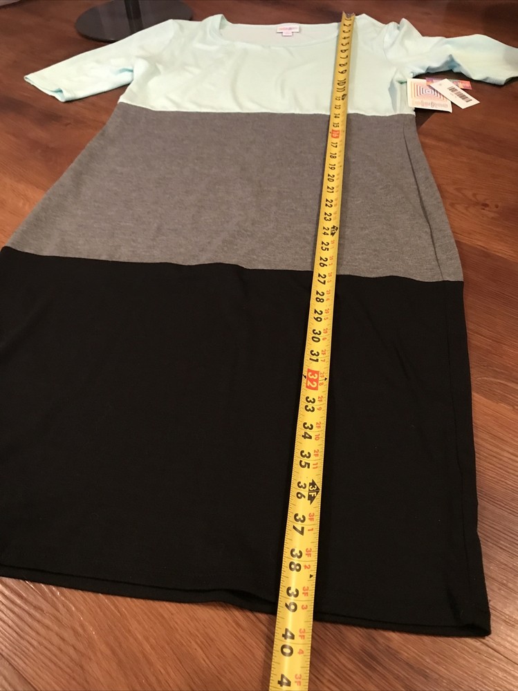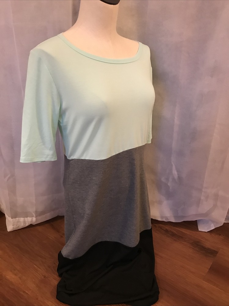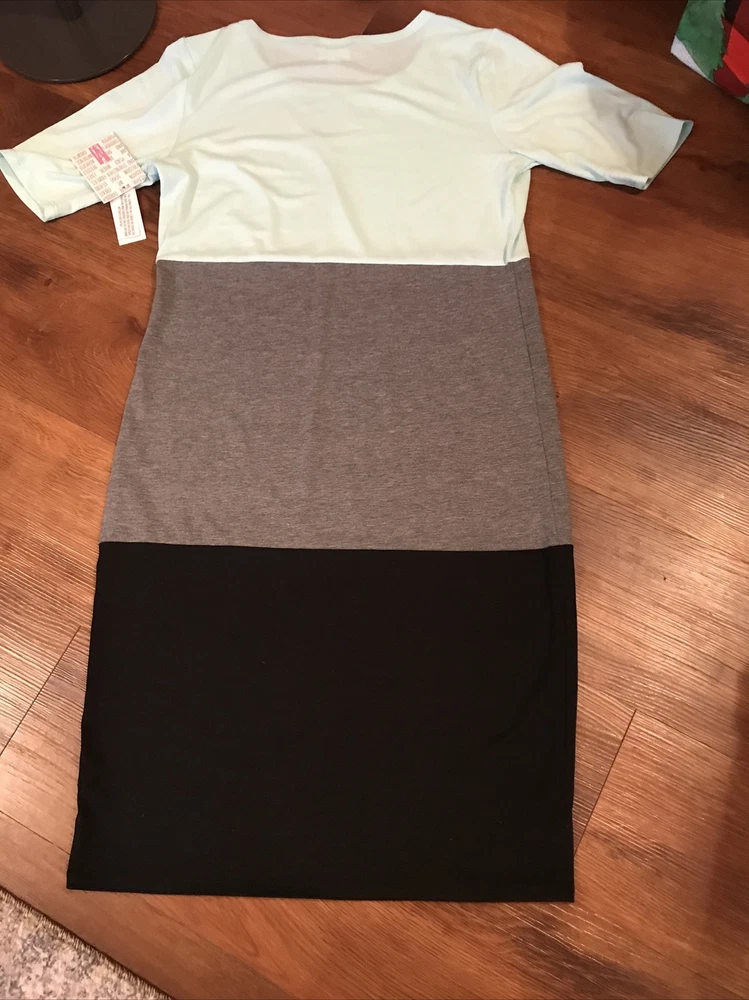 Lularoe Julia Dress Medium Gray blue black Bodycon ShortSleeves NWT. Comfortable flattering easy wear easy care lightweight dress Solid grey blue black Cute Item sold as shown please see photos for all details including condition and measurements Immediate ship will combine ship