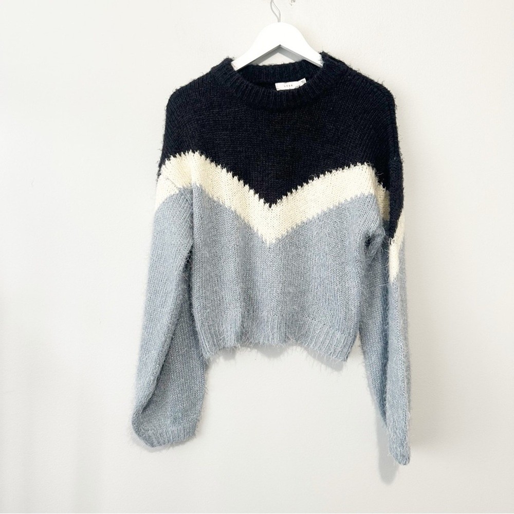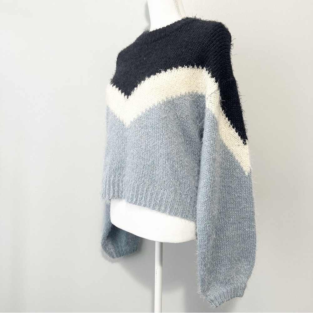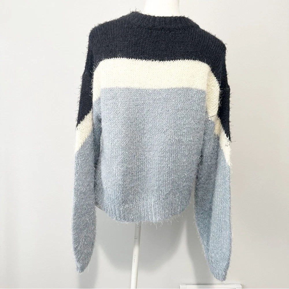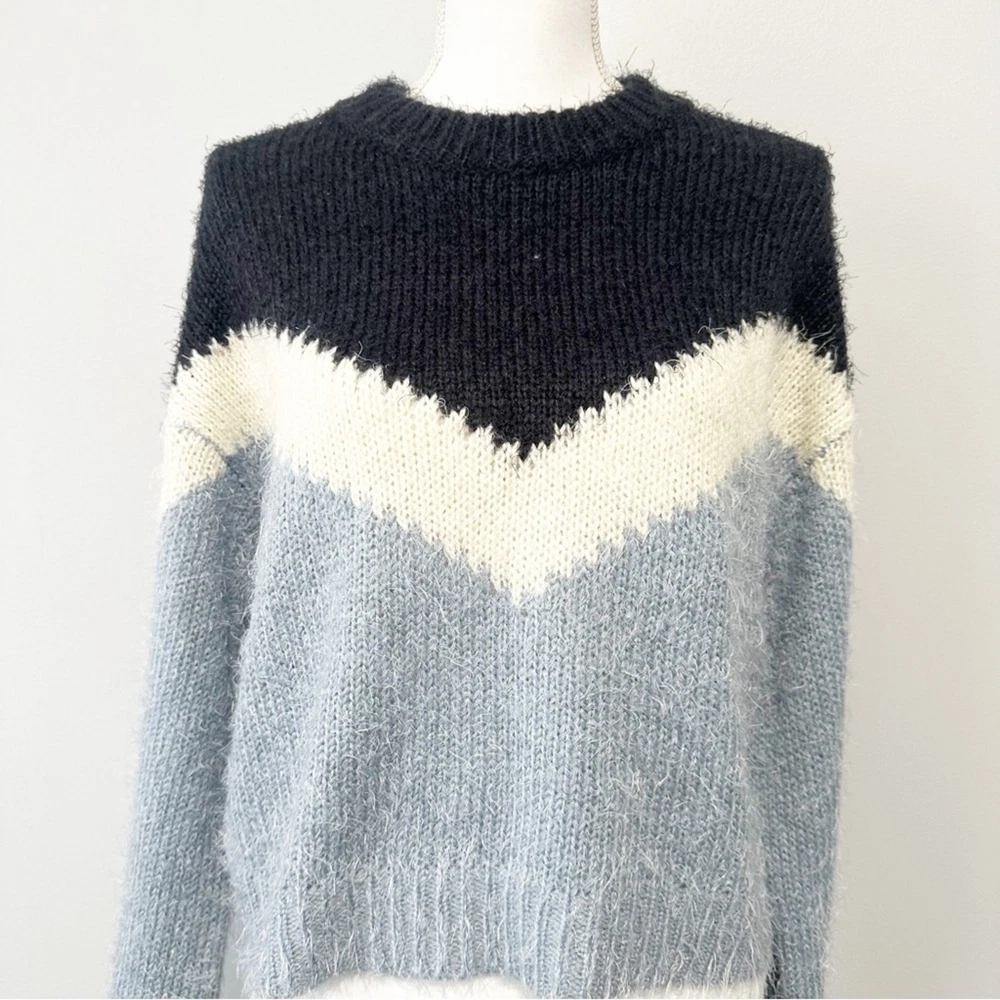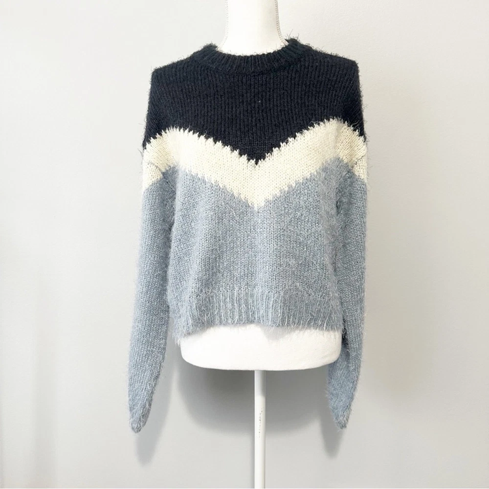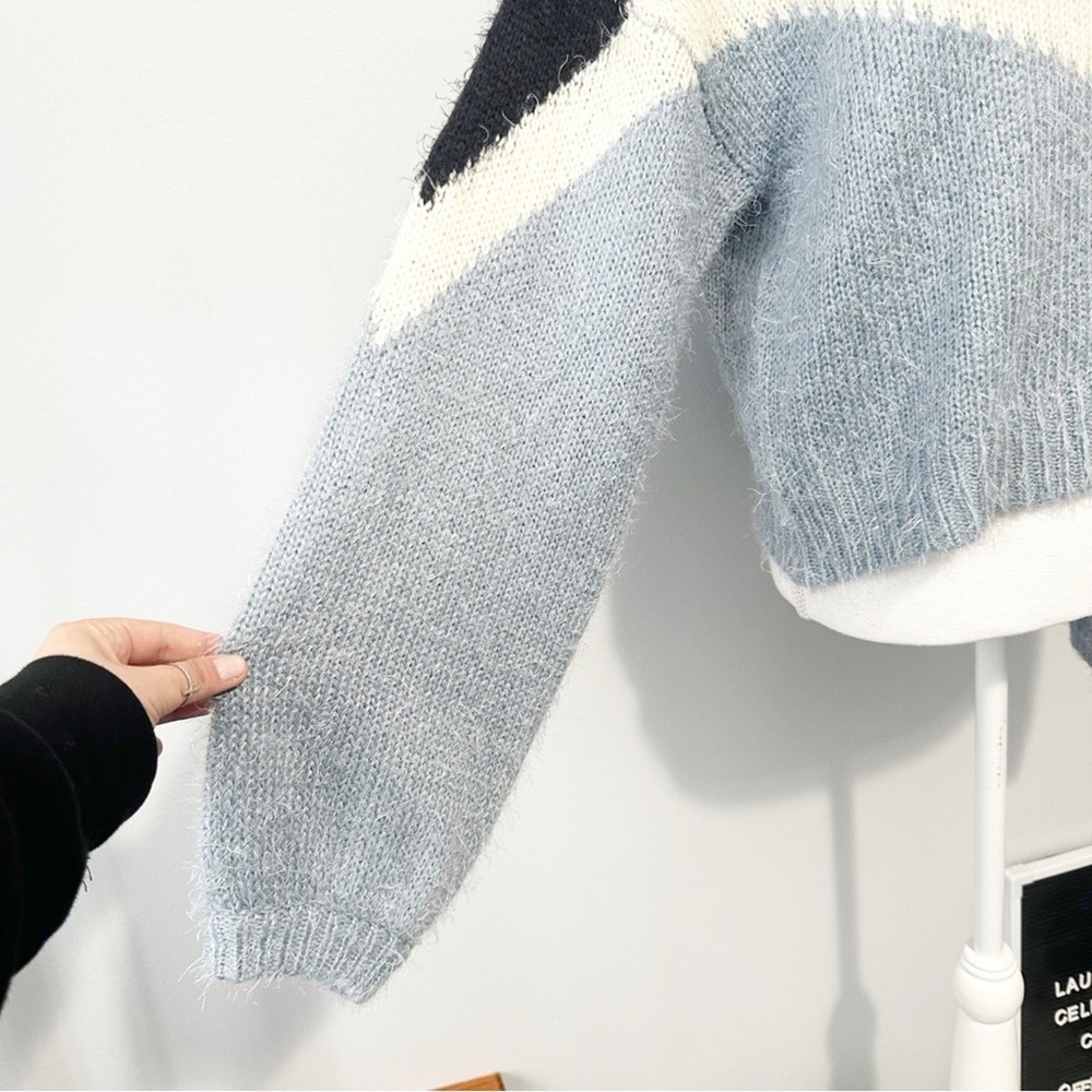 <![CDATA[<div>This sweater showcases a bold blue and white design, crafted with a soft, cozy texture. The crew neckline and full-length sleeves provide a relaxed fit, perfect for everyday wear. Its modern geometric pattern adds a stylish touch to any outfit. Approximate Measurements bust flat: 21" full length: 21"