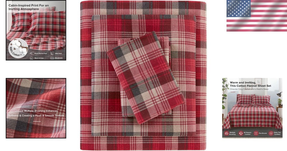 Luxurious 3 Piece Cotton Flannel Sheet Set - Twin Size Red Plaid for Cozy Nights ‹ › ‹ › ‹ › ‹ › ‹ › ‹ › ‹ › ‹ › ‹ › ‹ › Luxurious 3 Piece Cotton Flannel Sheet Set Twin Size Red Plaid for Cozy Nights Indulge in the ultimate comfort and warmth of our Luxurious 3 Piece Cotton Flannel Sheet Set, designed to transform your bedroom into a cozy retreat. Crafted from 100% cotton flannel, this Twin size set is adorned with a charming red plaid pattern that evokes the inviting ambience of a rustic cabin in the woods. Quality Materials: 100% Cotton Flannel: Soft, breathable, and gentle on the skin. OEKO-TEX Certified: Free from harmful substances and chemicals, ensuring safety and wellness. Set Includes: 1 Flat Sheet: 68"W x 98"L 1 Pillowcase: 21"W x 30"L 1 Fitted Sheet: 39"W x 75"L + 12"D Convenient Design: Elastic Fitted Sheet: Designed for a snug and secure fit, accommodating mattresses up to 12" deep in Twin and Twin XL sizes, or up to 14" deep in larger sizes. Easy Care: Machine washable; for best results, wash in cold water on a gentle cycle, and include 1/2 cup of distilled vinegar during the first wash to minimize fuzz and lint. Why Choose Our Flannel Sheet Set? Embrace the warmth and comfort of this incredibly soft flannel sheet set, crafted for those chilly nights where relaxation is paramount. The charming prints add a touch of whimsy while maintaining a classic aesthetic, making it the perfect addition to any bedroom decor. Machine washable and designed for durability, this sheet set will not only keep you warm but will also enhance your sleeping experience with its cozy embrace. Stay snug through the night with our Luxurious 3 Piece Cotton Flannel Sheet Set – where comfort meets style, turning your bedroom into a comforting sanctuary. Order yours today and experience the cozy nights you deserve! Shipping Free & Fast Shipping - We offer free shipping to most of the USA with a normal delivery time of 3-7 days. However, due to the current situation, additional delivery time (up to 3 weeks) may be required for some items. Alternative Carriers - We may use alternative carriers (e.g. USPS, FedEx, UPS, etc.) to ensure your package arrives safely and on time. Due to the use of multiple carriers, we are unable to provide a tracking number automatically. Handling Time - Orders are processed and shipped within 1-2 business days of receiving cleared payment. Shipping Restrictions - Shipping to Alaska, Hawaii, Puerto Rico, Guam, and other US territories may incur shipping charges or delivery restrictions. Please contact us before ordering, or your order can be refunded/cancelled. State Restrictions - There may be restrictions based on your state of purchase. For example, certain items may not be shipped to California due to state regulations. Contact for Tracking Updates - If you require tracking updates or have any concerns about the delivery of your order, please feel free to contact us, and we will be happy to assist you. Return 30-Day Hassle-Free Returns - We want you to be completely satisfied with your purchase. If you are not, you can return the item within 30 days of receiving it for a full refund or exchange. Easy Return Process - To start a return, simply contact us and we will provide you with a prepaid return shipping label and detailed instructions. Restocking Fee - There are no restocking fees for returns. However, the buyer is responsible for return shipping costs if the return is not due to a seller's error. Refund Processing Time - Refunds will be processed within 5 business days of receiving the returned item in its condition. Payment We accept all major credit cards, PayPal, and Apple Pay for your convenience. Your payment information is secure and encrypted to ensure a safe and seamless transaction. Please complete your payment within 3 days of purchase to avoid any delays in shipping. Feedback Your feedback is extremely important to us. We strive to provide the best products and customer service possible. If you are satisfied with your purchase, please take a moment to leave us a positive review. If you have any concerns or issues with your order, please contact us before leaving negative feedback. We are committed to resolving any problems and ensuring your satisfaction. Contact Us If you have any questions or concerns, please feel free to out to our customer support team. You can contact us through the eBay messaging system. We are available Monday to Friday, 9:00 am to 5:00 pm EST, and we will do our best to respond to your inquiry within 24 hours. Buy it now and enjoy a pleasant shopping experience! Unit Quantity: 3 Material: 100% Cotton,Flannel Features: Breathable,Machine Washable,Elastic Fitted Sheet,Deep Pocket Theme: Luxury Care Instructions: Machine Wash Department: Adults Room: Bedroom Size: Twin Type: Sheet Set Color: Red Plaid Pattern: Plaid Thread Count: 401-600 Style: Lodge/Cabin Shape: Rectangular GSM (Grams per Square Meter): 301 to 450 Unit Type: Unit