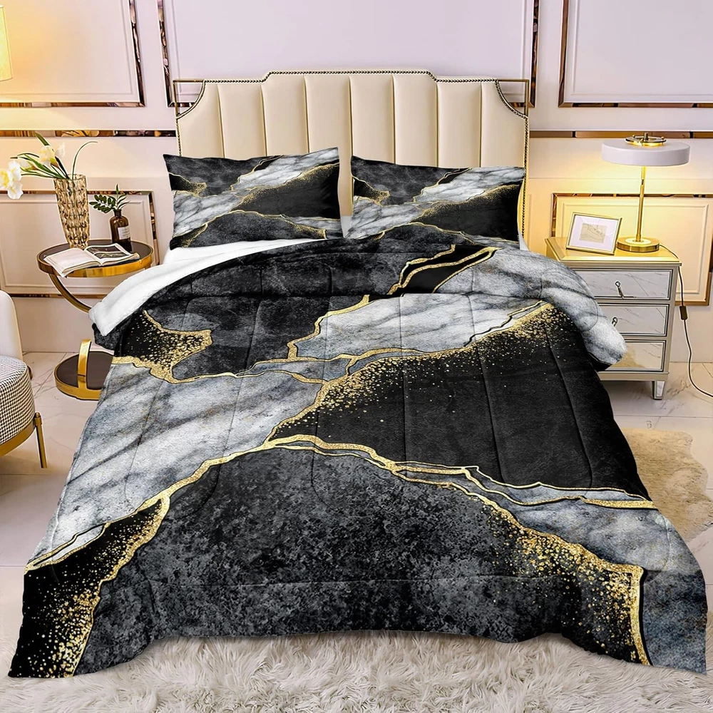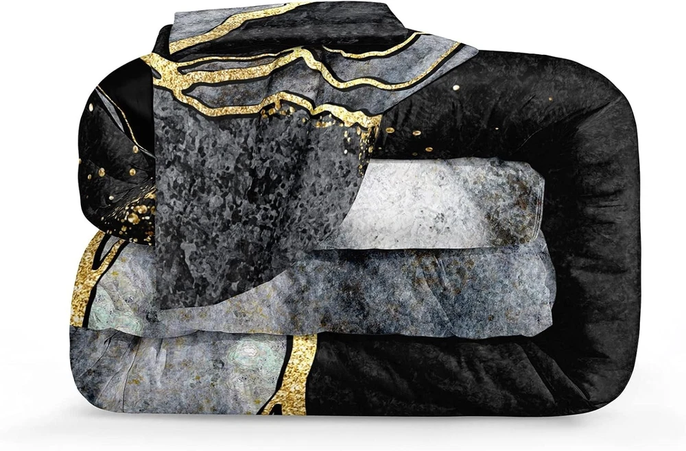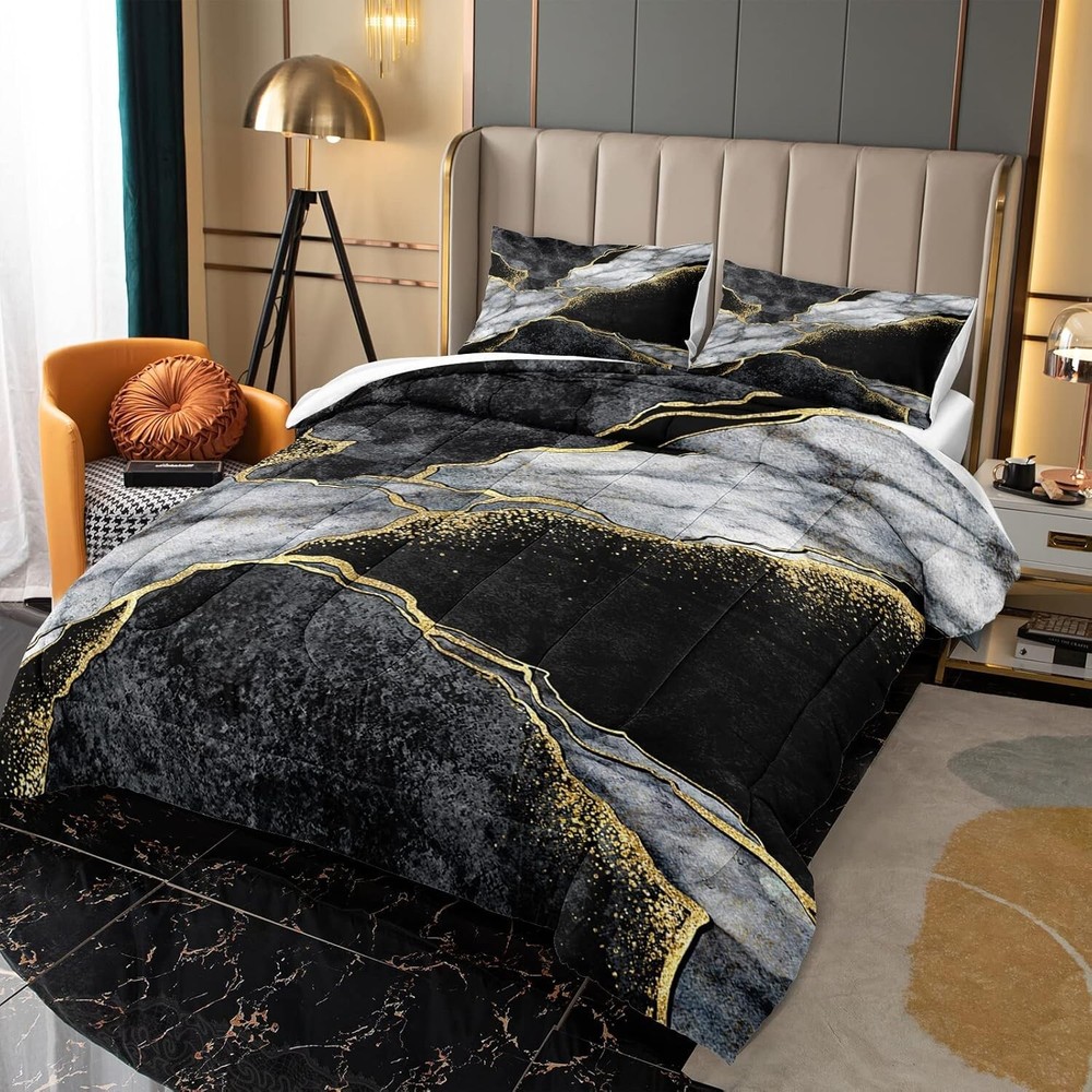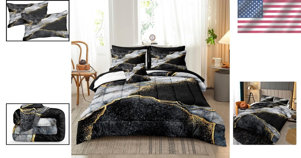 Luxurious Black & Gold Marble California King Comforter Set for Cozy Bedrooms ‹ › ‹ › ‹ › ‹ › ‹ › ‹ › ‹ › ‹ › ‹ › Luxurious Black & Gold Marble California King Comforter Set Transform your bedroom into a sanctuary of elegance with our Marble California King Comforter Set Product Dimensions: Comforter: 104 x 96 inches Pillow Cases: 20 x 36 inches (2 included) Design: Stunning black and white marble design that radiates a bohemian vibe. A perfect gift choice for family and friends to elevate their bedroom aesthetic. Comfort & Quality: Comforter Inner Fill: 200gsm whole piece 100% washed Microfiber, offering luxuriously soft comfort. Ideal balance of softness and warmth to ensure a cozy night’s sleep. Exceptional soft & cozy: Crafted with high-quality microfiber featuring fashionable stitching to prevent clumping. Designed for all seasons, ensuring you feel snug and comfortable throughout the . Easy Care: Maintain its beauty with gentle machine wash in cold water; avoid bleach and long soaking. Fresh out of the vacuum bag? Simply leave it in the sun to fluff or tumble dry on low heat. Why Choose Our Comforter Set? Indulge in the luxury of a well-decorated bedroom that reflects your taste and personality. This California King Comforter Set offers an exquisite blend of style and comfort that makes every night a soothing retreat. With its eye-catching marble print, timeless elegance, and soft texture, it is a standout choice for those seeking both beauty and practicality in their bedroom decor. Don’t miss the opportunity to elevate your sleeping space into a stylish haven — order your Luxurious Black & Gold Marble California King Comforter Set today! Shipping Free & Fast Shipping - We offer free shipping to most of the USA with a normal delivery time of 3-7 days. However, due to the current situation, additional delivery time (up to 3 weeks) may be required for some items. Alternative Carriers - We may use alternative carriers (e.g. USPS, FedEx, UPS, etc.) to ensure your package arrives safely and on time. Due to the use of multiple carriers, we are unable to provide a tracking number automatically. Handling Time - Orders are processed and shipped within 1-2 business days of receiving cleared payment. Shipping Restrictions - Shipping to Alaska, Hawaii, Puerto Rico, Guam, and other US territories may incur shipping charges or delivery restrictions. Please contact us before ordering, or your order can be refunded/cancelled. State Restrictions - There may be restrictions based on your state of purchase. For example, certain items may not be shipped to California due to state regulations. Contact for Tracking Updates - If you require tracking updates or have any concerns about the delivery of your order, please feel free to contact us, and we will be happy to assist you. Return 30-Day Hassle-Free Returns - We want you to be completely satisfied with your purchase. If you are not, you can return the item within 30 days of receiving it for a full refund or exchange. Easy Return Process - To start a return, simply contact us and we will provide you with a prepaid return shipping label and detailed instructions. Restocking Fee - There are no restocking fees for returns. However, the buyer is responsible for return shipping costs if the return is not due to a seller's error. Refund Processing Time - Refunds will be processed within 5 business days of receiving the returned item in its condition. Payment We accept all major credit cards, PayPal, and Apple Pay for your convenience. Your payment information is secure and encrypted to ensure a safe and seamless transaction. Please complete your payment within 3 days of purchase to avoid any delays in shipping. Feedback Your feedback is extremely important to us. We strive to provide the best products and customer service possible. If you are satisfied with your purchase, please take a moment to leave us a positive review. If you have any concerns or issues with your order, please contact us before leaving negative feedback. We are committed to resolving any problems and ensuring your satisfaction. Contact Us If you have any questions or concerns, please feel free to out to our customer support team. You can contact us through the eBay messaging system. We are available Monday to Friday, 9:00 am to 5:00 pm EST, and we will do our best to respond to your inquiry within 24 hours. Buy it now and enjoy a pleasant shopping experience! Set Includes: Comforter,Pillowcase Material: Microfiber Features: Hypoallergenic,Lightweight Theme: Luxury Care Instructions: Do Not Bleach,Machine Wash Department: Adults Room: Bedroom Size: California King Type: Comforter Set Color: Black Fill Material: 100% Polyester Pattern: Marble Insulation: All Seasons Number of Items in Set: 3 Style: Modern Season: All Closure Type: No Closure Thread Count: 401-600 GSM (Grams per Square Meter): 301 to 450