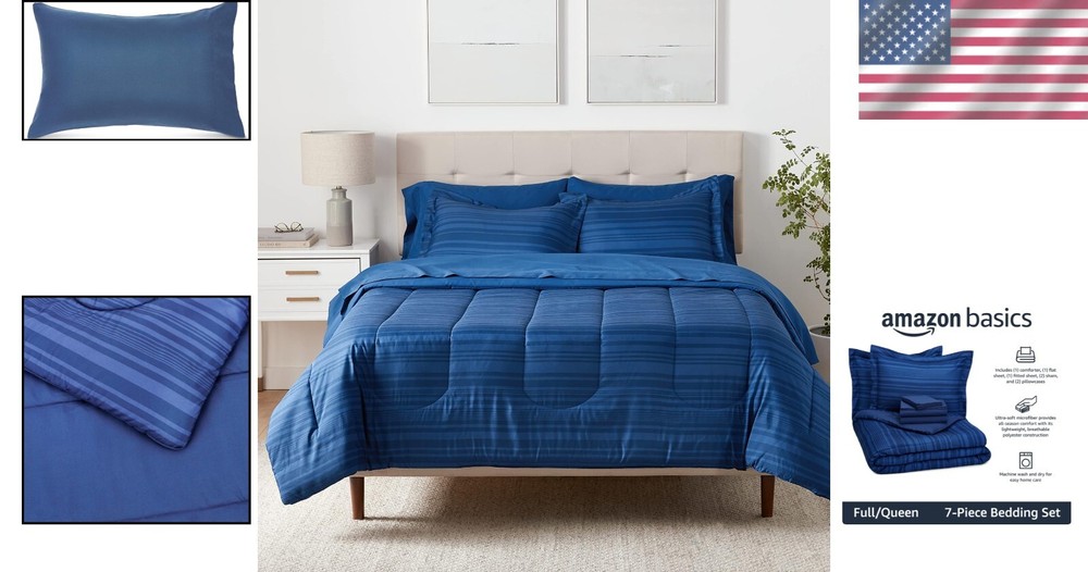 Luxurious Full/Queen 7-Piece Bedding Set - Cozy Blue Microfiber Comforter ‹ › ‹ › ‹ › ‹ › ‹ › ‹ › ‹ › ‹ › ‹ › ‹ › Luxurious Full/Queen 7-Piece Bedding Set Immerse yourself in a world of comfort and elegance with our stunning Cozy Blue Microfiber Comforter set. This opulent bedding ensemble is designed to create a serene and inviting atmosphere for your personal sanctuary. Features: Complete 7-Piece Set: Includes a plush comforter, oversized flat sheet (66 x 96 inches), fitted sheet (39 x 80 x 12 inches), sham (20 x 26 inches), and a pillowcase (20 x 30 inches), ensuring a comprehensive bedding solution. All-Season Warmth: Made from lightweight 100% polyester microfiber, providing warmth and comfort without the added weight - perfect for -round use. Stylish Design: Features a classic blue calvin striped design that adds a sophisticated touch to your bedroom decor. Easy Care: Fully machine washable and dryable for effortless maintenance, helping you maintain a fresh sleeping environment. Safety Assurance: Certified MADE IN GREEN by OEKO-TEX, ensuring that our products meet high safety standards and are manufactured in environmentally responsible workplaces. Benefits: Transforms your bedroom into a cozy retreat. Soft and durable material provides both comfort and style. Lightweight warmth suitable for any season. Effortless cleaning for a pristine sleeping space. Peace of mind knowing your bedding is safe and ecologically made. Why Choose Our Luxurious Bedding Set? Elevate your sleeping experience with our elegant Luxurious Full/Queen 7-Piece Bedding Set. Perfect for any bedroom or college dorm, this set harmoniously blends style with functionality, allowing you to sleep in utmost comfort and luxury. Revitalize your bedroom decor while ensuring sweet dreams every night! Don’t wait to indulge in plush comfort—experience the luxury of our Cozy Blue Microfiber Comforter set today! Shipping Free & Fast Shipping - We offer free shipping to most of the USA with a normal delivery time of 3-7 days. However, due to the current situation, additional delivery time (up to 3 weeks) may be required for some items. Alternative Carriers - We may use alternative carriers (e.g. USPS, FedEx, UPS, etc.) to ensure your package arrives safely and on time. Due to the use of multiple carriers, we are unable to provide a tracking number automatically. Handling Time - Orders are processed and shipped within 1-2 business days of receiving cleared payment. Shipping Restrictions - Shipping to Alaska, Hawaii, Puerto Rico, Guam, and other US territories may incur shipping charges or delivery restrictions. Please contact us before ordering, or your order can be refunded/cancelled. State Restrictions - There may be restrictions based on your state of purchase. For example, certain items may not be shipped to California due to state regulations. Contact for Tracking Updates - If you require tracking updates or have any concerns about the delivery of your order, please feel free to contact us, and we will be happy to assist you. Return 30-Day Hassle-Free Returns - We want you to be completely satisfied with your purchase. If you are not, you can return the item within 30 days of receiving it for a full refund or exchange. Easy Return Process - To start a return, simply contact us and we will provide you with a prepaid return shipping label and detailed instructions. Restocking Fee - There are no restocking fees for returns. However, the buyer is responsible for return shipping costs if the return is not due to a seller's error. Refund Processing Time - Refunds will be processed within 5 business days of receiving the returned item in its condition. Payment We accept all major credit cards, PayPal, and Apple Pay for your convenience. Your payment information is secure and encrypted to ensure a safe and seamless transaction. Please complete your payment within 3 days of purchase to avoid any delays in shipping. Feedback Your feedback is extremely important to us. We strive to provide the best products and customer service possible. If you are satisfied with your purchase, please take a moment to leave us a positive review. If you have any concerns or issues with your order, please contact us before leaving negative feedback. We are committed to resolving any problems and ensuring your satisfaction. Contact Us If you have any questions or concerns, please feel free to out to our customer support team. You can contact us through the eBay messaging system. We are available Monday to Friday, 9:00 am to 5:00 pm EST, and we will do our best to respond to your inquiry within 24 hours. Buy it now and enjoy a pleasant shopping experience! Set Includes: Comforter,Fitted Sheet,Flat Sheet,Pillowcase,Pillow Sham Material: Microfiber,100% Polyester Features: Lightweight,All-Season Warmth,Cozy Sleeping Space,Easy Home Care Theme: Luxury Care Instructions: Do Not Bleach,Machine Wash,Machine Wash Cold Department: Unisex Baby & Toddler,Kids,Teens,Adults Room: Bedroom,College Dorms Size: Queen Type: Comforter Set Color: Blue Fill Material: Polyester Pattern: Striped Insulation: All Seasons Style: Contemporary Number of Items in Set: 7 Season: All Closure Type: No Closure Thread Count: 200 or Less GSM (Grams per Square Meter): Below 150