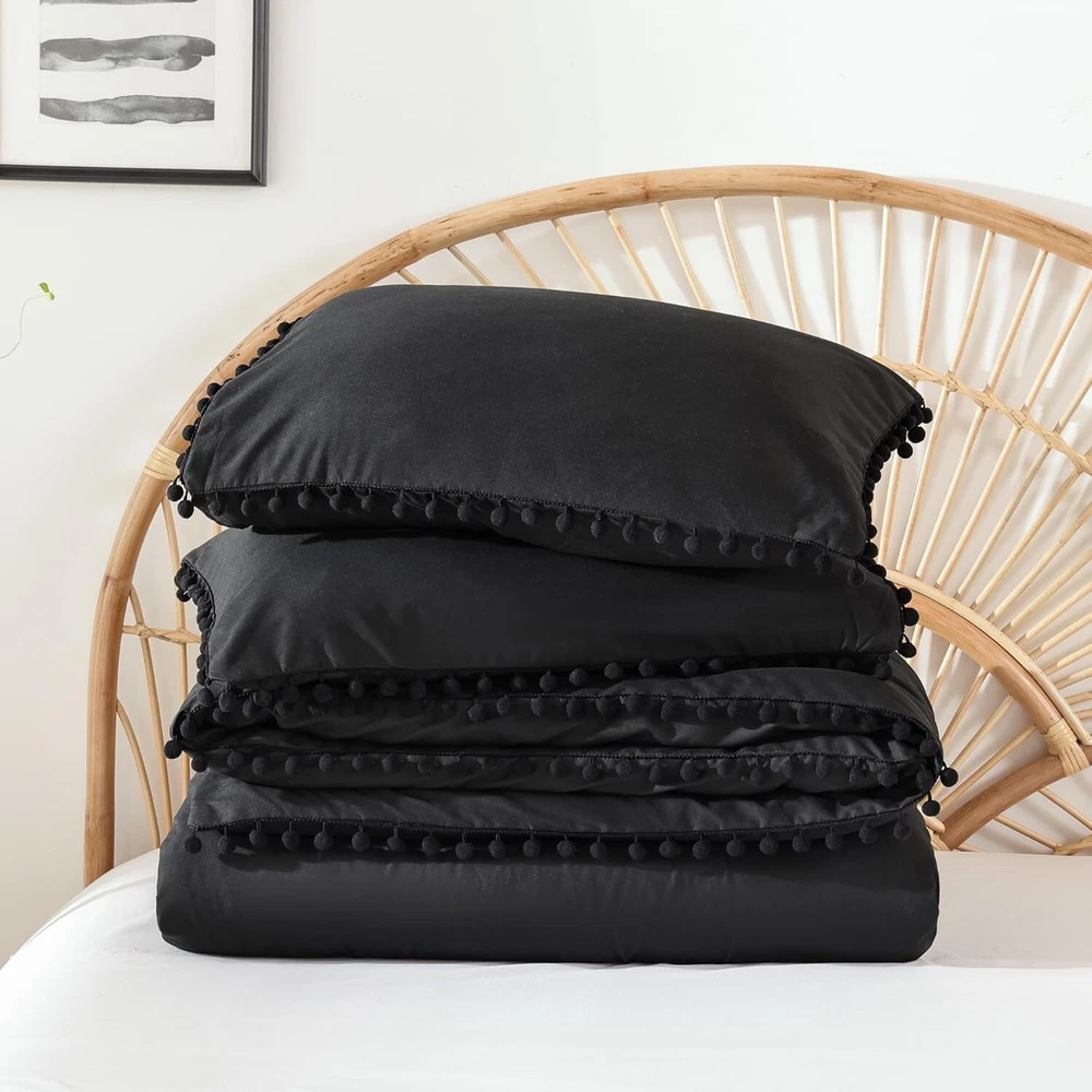 Luxurious King Size Comforter Set with Pom Fringe - All-Season Comfort in Black ‹ › ‹ › ‹ › ‹ › ‹ › ‹ › ‹ › ‹ › ‹ › ‹ › Luxurious King Size Comforter Set with Pom Fringe All-Season Comfort in Black The Set Contains: 1 Comforter (104 inches x 90 inches) 2 Pillowcases (20 inches x 36 inches) Features: Soft & Comfortable on Skin: Crafted from premium microfiber with a unique stone-washed process for exceptional softness that caresses your skin. Cloud-Like Comfort: Filled with premium microfiber that provides a cozy, cloud-like experience for year-round comfort. Pom Fringe Design: Exquisite ball tassel stitching adorns three sides of the comforter and pillowcases, ensuring durability and a chic finish that complements any room style. Safe Material: Certified by Standard 100 by OEKO-TEX, this fluffy comforter meets the highest testing criteria for harmful chemicals, ensuring safety for you and your loved ones. Wash Care: Effortless maintenance; simply machine wash in cold water on a gentle cycle for a like-new restoration. Benefits: Transform your bedroom into a luxurious retreat with our effortlessly chic design. Experience comfort and safe materials, providing peace of mind for you and your family. The versatile black color adapts to any decor, enhancing your space with elegance. Enjoy all-season coziness, ensuring you and your loved ones stay comfortable year-round. Why Choose Our Luxurious King Size Comforter Set? Indulge in the elegance and comfort of our Luxurious King Size Comforter Set with Pom Fringe, a timeless addition to your bedroom sanctuary. Say goodbye to ordinary bedding and embrace the enriched softness and safety of premium materials. Perfectly designed for style and practicality, this set will not only elevate your room but also provide the ultimate cozy experience. Treat yourself or a loved one to the luxury you deserve – order yours today! Shipping Free & Fast Shipping - We offer free shipping to most of the USA with a normal delivery time of 3-7 days. However, due to the current situation, additional delivery time (up to 3 weeks) may be required for some items. Alternative Carriers - We may use alternative carriers (e.g. USPS, FedEx, UPS, etc.) to ensure your package arrives safely and on time. Due to the use of multiple carriers, we are unable to provide a tracking number automatically. Handling Time - Orders are processed and shipped within 1-2 business days of receiving cleared payment. Shipping Restrictions - Shipping to Alaska, Hawaii, Puerto Rico, Guam, and other US territories may incur shipping charges or delivery restrictions. Please contact us before ordering, or your order can be refunded/cancelled. State Restrictions - There may be restrictions based on your state of purchase. For example, certain items may not be shipped to California due to state regulations. Contact for Tracking Updates - If you require tracking updates or have any concerns about the delivery of your order, please feel free to contact us, and we will be happy to assist you. Return 30-Day Hassle-Free Returns - We want you to be completely satisfied with your purchase. If you are not, you can return the item within 30 days of receiving it for a full refund or exchange. Easy Return Process - To start a return, simply contact us and we will provide you with a prepaid return shipping label and detailed instructions. Restocking Fee - There are no restocking fees for returns. However, the buyer is responsible for return shipping costs if the return is not due to a seller's error. Refund Processing Time - Refunds will be processed within 5 business days of receiving the returned item in its original condition. Payment We accept all major credit cards, PayPal, and Apple Pay for your convenience. Your payment information is secure and encrypted to ensure a safe and seamless transaction. Please complete your payment within 3 days of purchase to avoid any delays in shipping. Feedback Your feedback is extremely important to us. We strive to provide the best products and customer service possible. If you are satisfied with your purchase, please take a moment to leave us a positive review. If you have any concerns or issues with your order, please contact us before leaving negative feedback. We are committed to resolving any problems and ensuring your satisfaction. Contact Us If you have any questions or concerns, please feel free to reach out to our customer support team. You can contact us through the eBay messaging system. We are available Monday to Friday, 9:00 am to 5:00 pm EST, and we will do our best to respond to your inquiry within 24 hours. Buy it now and enjoy a pleasant shopping experience! UPC: Not Set Model: Not Set Set Includes: Comforter,Pillow Sham Material: Microfiber,Polyester Features: Soft,Durable,Comfortable,Cloud-Like Comfort,OEKO-TEX Certified Character: Not Set Theme: Luxury Care Instructions: Machine Wash,Machine Wash Cold Department: Unisex Baby & Toddler,Kids,Teens,Adults Room: Bedroom Labels & Certifications: Not Set Size: King Type: Comforter Set Brand: Unbranded Color: Black Fill Material: Polyester Pattern: Solid Item Width: Not Set Item Length: Not Set MPN: Not Set Number of Items in Set: 3 Style: Bohemian Character Family: Not Set Insulation: All Seasons Season: All Country/Region of Manufacture: Not Set Closure Type: No Closure Thread Count: 200 or Less Drop Length: Not Set GSM (Grams per Square Meter): 301 to 450 Product Line: Not Set Personalize: Not Set