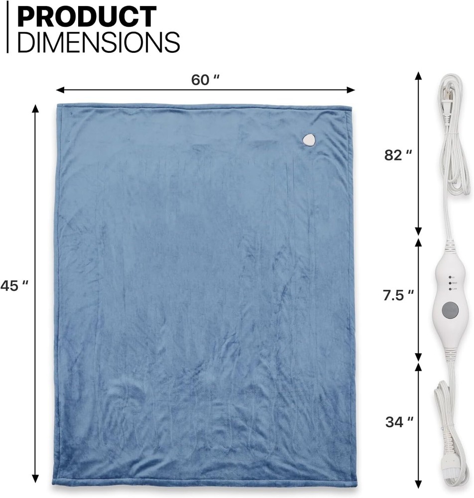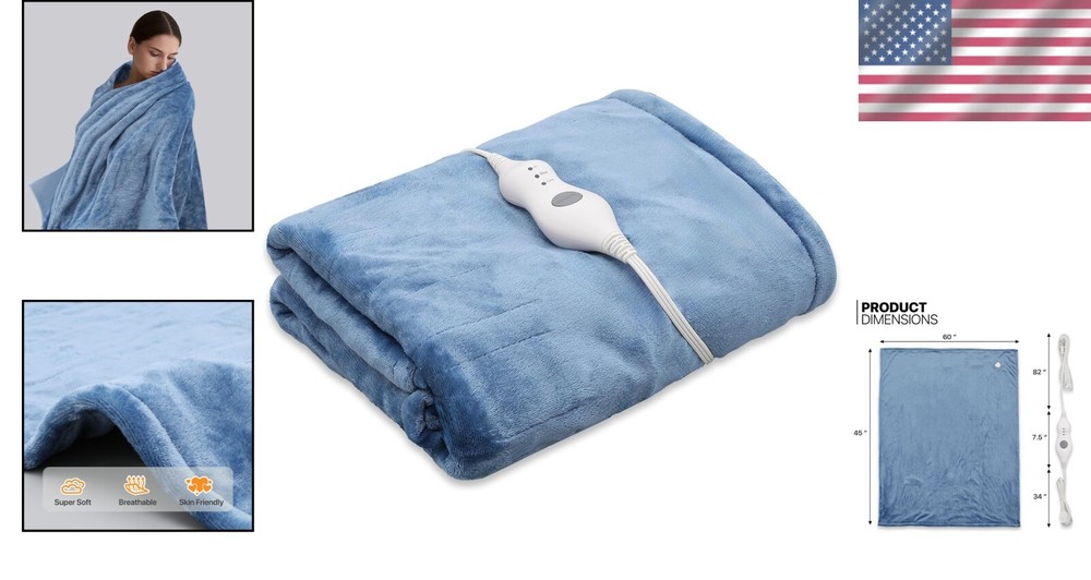 Luxurious Machine-Washable Heated Blanket 60"x45" - 3 Heat Levels & Cozy Comfort ‹ › ‹ › ‹ › ‹ › ‹ › ‹ › ‹ › ‹ › ‹ › ‹ › Luxurious Machine-Washable Heated Blanket Size: 60" x 45" - Experience the epitome of cozy comfort with our luxurious heated blanket, designed for those who appreciate both warmth and style. Features: Crafted from double-sided cozy flannel fleece for superior softness and a silky touch. Generously sized at 45x60 inches, perfect for enveloping your entire body in warmth. Advanced heating technology featuring 2.2mm heating wire, ensuring comfort without the feeling of wires during use. Comfort and Control: Choose from 3 finely-tuned heat levels, ranging from a mild 86℉ to a toasty 109℉, allowing you to customize your comfort experience. Fast heating capability within just 5 minutes, superior to ordinary electric blankets. Timer feature for automatic shut-off, providing peace of mind as you drift off to slumber. Safety and Quality Assurance: Certified safe by ETL, CETL, FCC, and PROP65, ensuring the highest standards in electrical safety. Quality materials and construction that prioritize your safety and well-being. Versatile Usage: Ideal for cozy movie nights, long work sessions in a chilly home office, or for wrapping up in bed during frosty nights. Perfect companion for fall evenings on the patio or combating overly air-conditioned environments during summer. The Perfect Gift: Searching for a thoughtful and practical gift? Our heated blanket is an excellent present for holidays, birthdays, anniversaries, or any special occasion. Show your loved ones you care by giving them the luxurious gift of warmth and comfort. Embrace cozy moments and elevate your comfort experience with our Luxurious Machine-Washable Heated Blanket - order yours today! Shipping Free & Fast Shipping - We offer free shipping to most of the USA with a normal delivery time of 3-7 days. However, due to the current situation, additional delivery time (up to 3 weeks) may be required for some items. Alternative Carriers - We may use alternative carriers (e.g. USPS, FedEx, UPS, etc.) to ensure your package arrives safely and on time. Due to the use of multiple carriers, we are unable to provide a tracking number automatically. Handling Time - Orders are processed and shipped within 1-2 business days of receiving cleared payment. Shipping Restrictions - Shipping to Alaska, Hawaii, Puerto Rico, Guam, and other US territories may incur shipping charges or delivery restrictions. Please contact us before ordering, or your order can be refunded/cancelled. State Restrictions - There may be restrictions based on your state of purchase. For example, certain items may not be shipped to California due to state regulations. Contact for Tracking Updates - If you require tracking updates or have any concerns about the delivery of your order, please feel free to contact us, and we will be happy to assist you. Return 30-Day Hassle-Free Returns - We want you to be completely satisfied with your purchase. If you are not, you can return the item within 30 days of receiving it for a full refund or exchange. Easy Return Process - To start a return, simply contact us and we will provide you with a prepaid return shipping label and detailed instructions. Restocking Fee - There are no restocking fees for returns. However, the buyer is responsible for return shipping costs if the return is not due to a seller's error. Refund Processing Time - Refunds will be processed within 5 business days of receiving the returned item in its original condition. Payment We accept all major credit cards, PayPal, and Apple Pay for your convenience. Your payment information is secure and encrypted to ensure a safe and seamless transaction. Please complete your payment within 3 days of purchase to avoid any delays in shipping. Feedback Your feedback is extremely important to us. We strive to provide the best products and customer service possible. If you are satisfied with your purchase, please take a moment to leave us a positive review. If you have any concerns or issues with your order, please contact us before leaving negative feedback. We are committed to resolving any problems and ensuring your satisfaction. Contact Us If you have any questions or concerns, please feel free to reach out to our customer support team. You can contact us through the eBay messaging system. We are available Monday to Friday, 9:00 am to 5:00 pm EST, and we will do our best to respond to your inquiry within 24 hours. Buy it now and enjoy a pleasant shopping experience! UPC: Not Set Item Length: Not Set Item Width: Not Set Unit Quantity: 3.1 Material: Flannel,flannel fleece Features: Electric,Machine Washable,Electric Heat Theme: Luxury Character: Not Set Department: Adults Care Instructions: Machine Wash Room: Bedroom,Living Room,Office Labels & Certifications: Not Set Brand: Unbranded Size: 45 x 60 in Type: Throw Blanket Character Family: Not Set Color: Sky Blue Pattern: Solid MPN: Not Set Style: Modern Insulation: Warm Country/Region of Manufacture: Not Set Shape: Rectangular Closure Type: No Closure GSM (Grams per Square Meter): Over 800 Product Line: Not Set Thread Count: 200 or Less Drop Length: Not Set Model: Not Set Unit Type: lb Personalize: Not Set
