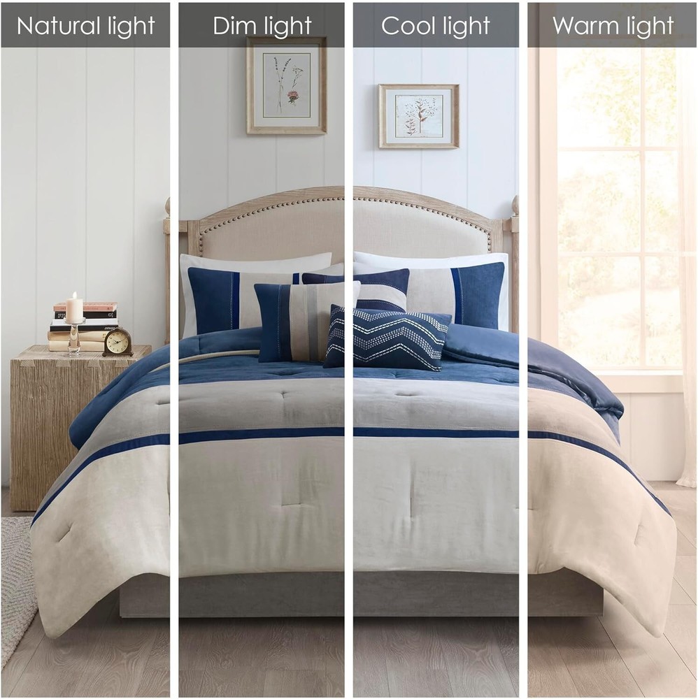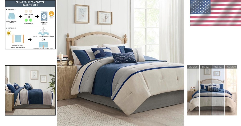 Luxury Faux Suede 7-Piece Bedding Set - Queen Comforter, Shams & Decor Pillows ‹ › ‹ › ‹ › ‹ › ‹ › ‹ › ‹ › ‹ › ‹ › ‹ › ‹ › ‹ › ‹ › ‹ › ‹ › ‹ › Luxury Faux Suede 7-Piece Bedding Set Transform your sleeping sanctuary with our exquisite Luxury Faux Suede 7-Piece Bedding Set, perfect for those who appreciate the perfect blend of comfort and elegance. Product Details: Material: 100% Faux Suede Origin: Imported Set Includes: 1 Comforter (90x90") 2 Standard Shams (20x26") 1 Bed Skirt (60x80+15") 3 Decorative Pillows (18x18", 16x16", 12x18" ) Features: Luxurious and velvety feel, crafted from high-quality micro-suede. Lightweight design provides warmth in winter and comfort in warmer . Unique pieced design showcasing a harmonious blend of Heather Grey, Navy Blue, and Charcoal Grey to suit any décor. Includes beautifully embroidered decorative pillows to add style and refinement. Solid Blue reverse for a chic, understated look. Compression packaging, requiring a quick fluff-up or steam iron before use to remove any wrinkles. Care Instructions: Machine wash on gentle cycle and separately. Spot clean decorative pillows. Do not bleach; tumble dry low and remove promptly. Do not iron. For larger items, please use a commercial washer/dryer to ensure proper cleaning. Why Choose Our Bedding Set? This Palisades micro-suede comforter set offers a casual touch of luxury, perfect for adding depth to your bedroom. Its rich colors and plush texture invite you to unwind and indulge in restful nights, all while ensuring your style remains effortlessly sophisticated. Elevate your home sanctuary with this versatile bedding set that strikes the perfect balance between style and comfort. Experience the embrace of luxury every night—order your Luxury Faux Suede 7-Piece Bedding Set today! Shipping Free & Fast Shipping - We offer free shipping to most of the USA with a normal delivery time of 3-7 days. However, due to the current situation, additional delivery time (up to 3 weeks) may be required for some items. Alternative Carriers - We may use alternative carriers (e.g. USPS, FedEx, UPS, etc.) to ensure your package arrives safely and on time. Due to the use of multiple carriers, we are unable to provide a tracking number automatically. Handling Time - Orders are processed and shipped within 1-2 business days of receiving cleared payment. Shipping Restrictions - Shipping to Alaska, Hawaii, Puerto Rico, Guam, and other US territories may incur shipping charges or delivery restrictions. Please contact us before ordering, or your order can be refunded/cancelled. State Restrictions - There may be restrictions based on your state of purchase. For example, certain items may not be shipped to California due to state regulations. Contact for Tracking Updates - If you require tracking updates or have any concerns about the delivery of your order, please feel free to contact us, and we will be happy to assist you. Return 30-Day Hassle-Free Returns - We want you to be completely satisfied with your purchase. If you are not, you can return the item within 30 days of receiving it for a full refund or exchange. Easy Return Process - To start a return, simply contact us and we will provide you with a prepaid return shipping label and detailed instructions. Restocking Fee - There are no restocking fees for returns. However, the buyer is responsible for return shipping costs if the return is not due to a seller's error. Refund Processing Time - Refunds will be processed within 5 business days of receiving the returned item in its condition. Payment We accept all major credit cards, PayPal, and Apple Pay for your convenience. Your payment information is secure and encrypted to ensure a safe and seamless transaction. Please complete your payment within 3 days of purchase to avoid any delays in shipping. Feedback Your feedback is extremely important to us. We strive to provide the best products and customer service possible. If you are satisfied with your purchase, please take a moment to leave us a positive review. If you have any concerns or issues with your order, please contact us before leaving negative feedback. We are committed to resolving any problems and ensuring your satisfaction. Contact Us If you have any questions or concerns, please feel free to out to our customer support team. You can contact us through the eBay messaging system. We are available Monday to Friday, 9:00 am to 5:00 pm EST, and we will do our best to respond to your inquiry within 24 hours. Buy it now and enjoy a pleasant shopping experience! Set Includes: Bed Skirt,Comforter,Comforter Set,Standard Shams,Decorative Pillows Material: Faux Suede,Polyester Features: Down Alternative,Lightweight,Cozy,Embroidered,Pieced Theme: Luxury Care Instructions: Do Not Bleach,Do Not Iron,Machine Wash,Gentle Cycle,Spot Clean,Tumble Dry Low Department: Adults,Unisex Adult Room: Bedroom Size: Queen Type: Comforter Set Color: Multicolor Fill Material: Synthetic Pattern: Solid Insulation: All Seasons Number of Items in Set: 7 Style: Lodge/Cabin Season: Winter Closure Type: No Closure Thread Count: 200 or Less GSM (Grams per Square Meter): Over 800