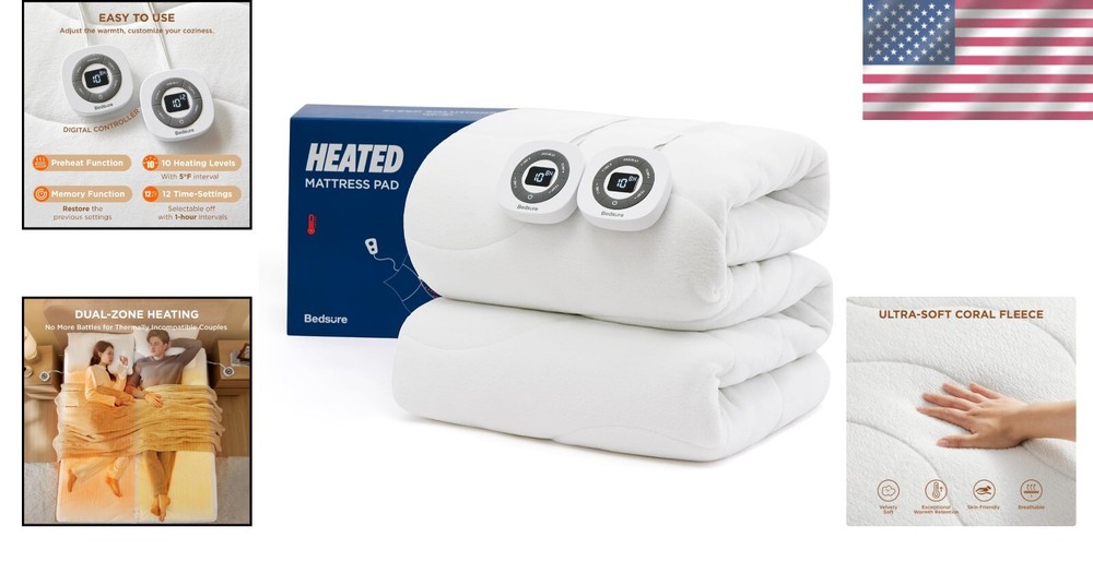Luxury King Electric Mattress Pad - Memory & Preheat Functions, 12-Hour Auto Off ‹ › ‹ › ‹ › ‹ › ‹ › ‹ › ‹ › ‹ › ‹ › ‹ › ‹ › Luxury King Electric Mattress Pad Transform your nights with the opulent warmth and sophisticated comfort of our Luxury King Electric Mattress Pad. With its premium features, this exquisite heated mattress pad is designed for those who appreciate elegance in their sleeping environment. Key Features: Customizable Warmth: Experience luxurious coziness with 10 heating levels and 12 time-settings, powered by advanced heating wire technology for fast and consistent heating. Safer & More Reliable: Conducted through a recognized laboratory, our pad has passed 74 safety tests, ensuring peace of mind. ETL and FCC certified with an 8-hour auto shut-off feature to prevent overheating. Cozy Elegance: Made from plush coral fleece, the cloud-like filling seamlessly integrates into your decor, offering charm and sophistication that makes it an ideal gift for winter or any special occasion. Easy to Use: Dual control options cater to thermally incompatible couples. The preheat function adjusts to body temperature, providing warmth without discomfort, while the memory function retains your previous settings. Deep Pocket Design: Easily adaptable to mattresses up to 18" deep with an all-around elastic band that secures it in place, ensuring it won’t shift during the night. Energy-Saving: Operating on standard 120V AC wall outlets at 60Hz, each dual 110W controller uses about one-thirtieth of the energy of traditional heaters, allowing you to enjoy comfort while saving on electricity costs. Indulge in Comfort and Safety Say goodbye to restless nights and embrace the exquisite blend of safety and comfort that our Luxury King Electric Mattress Pad offers. Perfect for those long winter nights, this pad ensures you remain cozy while reflecting your sophisticated taste. Don't just sleep; luxuriate in warmth every night. Elevate your sleeping experience with our Luxury King Electric Mattress Pad today! Shipping Free & Fast Shipping - We offer free shipping to most of the USA with a normal delivery time of 3-7 days. However, due to the current situation, additional delivery time (up to 3 weeks) may be required for some items. Alternative Carriers - We may use alternative carriers (e.g. USPS, FedEx, UPS, etc.) to ensure your package arrives safely and on time. Due to the use of multiple carriers, we are unable to provide a tracking number automatically. Handling Time - Orders are processed and shipped within 1-2 business days of receiving cleared payment. Shipping Restrictions - Shipping to Alaska, Hawaii, Puerto Rico, Guam, and other US territories may incur shipping charges or delivery restrictions. Please contact us before ordering, or your order can be refunded/cancelled. State Restrictions - There may be restrictions based on your state of purchase. For example, certain items may not be shipped to California due to state regulations. Contact for Tracking Updates - If you require tracking updates or have any concerns about the delivery of your order, please feel free to contact us, and we will be happy to assist you. Return 30-Day Hassle-Free Returns - We want you to be completely satisfied with your purchase. If you are not, you can return the item within 30 days of receiving it for a full refund or exchange. Easy Return Process - To start a return, simply contact us and we will provide you with a prepaid return shipping label and detailed instructions. Restocking Fee - There are no restocking fees for returns. However, the buyer is responsible for return shipping costs if the return is not due to a seller's error. Refund Processing Time - Refunds will be processed within 5 business days of receiving the returned item in its original condition. Payment We accept all major credit cards, PayPal, and Apple Pay for your convenience. Your payment information is secure and encrypted to ensure a safe and seamless transaction. Please complete your payment within 3 days of purchase to avoid any delays in shipping. Feedback Your feedback is extremely important to us. We strive to provide the best products and customer service possible. If you are satisfied with your purchase, please take a moment to leave us a positive review. If you have any concerns or issues with your order, please contact us before leaving negative feedback. We are committed to resolving any problems and ensuring your satisfaction. Contact Us If you have any questions or concerns, please feel free to reach out to our customer support team. You can contact us through the eBay messaging system. We are available Monday to Friday, 9:00 am to 5:00 pm EST, and we will do our best to respond to your inquiry within 24 hours. Buy it now and enjoy a pleasant shopping experience! UPC: Not Set Item Length: Heated Mattress Pad King Item Width: Heated Mattress Pad King Unit Quantity: 6.82 Material: Polyester,Coral Fleece Features: Machine Washable,Fast Heating,Memory Function,Preheat Function,10 Heat Settings,12 Hour Auto Off,Dual Controllers,Cozy Elegance,Deep Pocket,Energy Saving Care Instructions: Machine Wash Character: Not Set Theme: Luxury Department: Adults Room: Bedroom Labels & Certifications: Not Set Brand: Unbranded Size: King Type: Mattress Pad Fill Material: Cloud-like Filling Color: White Pattern: Not Set MPN: Not Set Closure Type: Pull On Insulation: Warm Character Family: Not Set Country/Region of Manufacture: Not Set Shape: Rectangular Style: Cozy GSM (Grams per Square Meter): Not specified Model: Not Set Product Line: Not Set Thread Count: Not specified Unit Type: lb