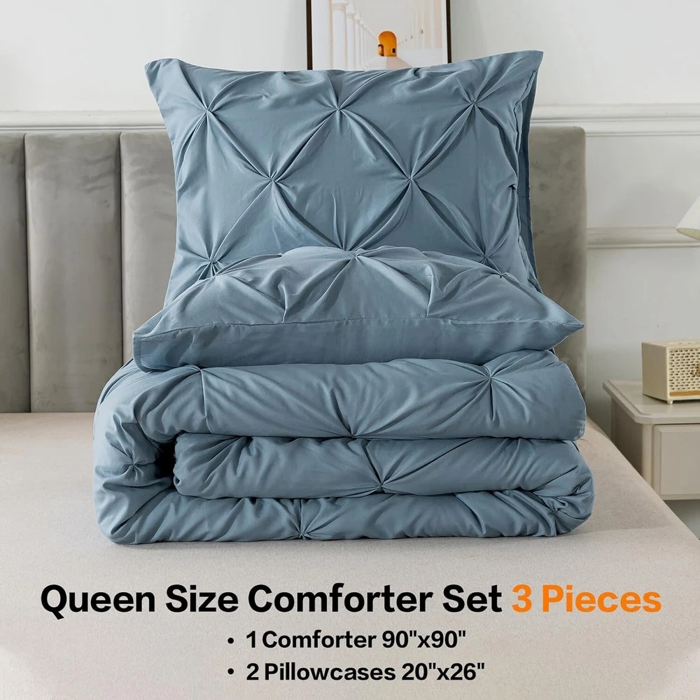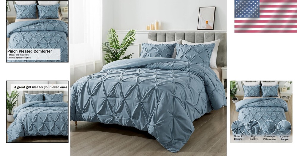 Luxury Pinch Pleat Queen Comforter Set in Grayish Blue – Stylish and Lightweight ‹ › ‹ › ‹ › ‹ › ‹ › ‹ › ‹ › ‹ › ‹ › Luxury Pinch Pleat Queen Comforter Set in Grayish Blue Elevate your bedroom decor with a touch of luxury and sophistication. Our exquisite pinch pleat comforter set in a serene grayish blue is the perfect blend of beauty and functionality, designed to bring a lavish atmosphere to any space. Features: Stylish Design: The white pintuck comforter offers a modern and fashionable touch, perfectly coordinating with your existing room decorations. High-Quality Material: Crafted from soft, high-quality microfiber, this comforter set ensures an extraordinarily cozy experience. Lightweight Warmth: Filled with down alternative microfiber, the comforter strikes an ideal balance between warmth and weight, allowing for a restful night's sleep. Handcrafted Excellence: Each pleat is handmade to perfection, showcasing unrivaled craftsmanship that exudes elegance. -Round Comfort: Our bedding set is suitable for all seasons, providing just the right amount of warmth while maintaining a lightweight feel. Perfect Dimensions: Includes a queen-size comforter (90x90 inches) and 2 pillowcases (20x26 inches), making it a versatile choice for your bedding needs. Benefits: Transform your bedroom into a sanctuary of comfort and style. Experience the fusion of modern aesthetics with warmth, ensuring a good night’s rest. Perfect as a thoughtful gift for anniversaries, holidays, or special occasions. Handmade quality ensures long-lasting beauty and durability. Easy to maintain and vacuum-packed for easy storage and transport. Why Choose Our Luxury Comforter Set? Indulge in the plush softness and elegant design of our Luxury Pinch Pleat Queen Comforter Set. Perfect for anyone who values quality and style in their home, this bedding set not only enhances your bedroom aesthetic but also enriches your sleeping experience. Treat yourself or gift it to a loved one, and enjoy the blend of visual appeal and supreme comfort that promises restful nights and stylish days. Order today and redefine your rest with our stunning comforter set. Shipping Free & Fast Shipping - We offer free shipping to most of the USA with a normal delivery time of 3-7 days. However, due to the current situation, additional delivery time (up to 3 weeks) may be required for some items. Alternative Carriers - We may use alternative carriers (e.g. USPS, FedEx, UPS, etc.) to ensure your package arrives safely and on time. Due to the use of multiple carriers, we are unable to provide a tracking number automatically. Handling Time - Orders are processed and shipped within 1-2 business days of receiving cleared payment. Shipping Restrictions - Shipping to Alaska, Hawaii, Puerto Rico, Guam, and other US territories may incur shipping charges or delivery restrictions. Please contact us before ordering, or your order can be refunded/cancelled. State Restrictions - There may be restrictions based on your state of purchase. For example, certain items may not be shipped to California due to state regulations. Contact for Tracking Updates - If you require tracking updates or have any concerns about the delivery of your order, please feel free to contact us, and we will be happy to assist you. Return 30-Day Hassle-Free Returns - We want you to be completely satisfied with your purchase. If you are not, you can return the item within 30 days of receiving it for a full refund or exchange. Easy Return Process - To start a return, simply contact us and we will provide you with a prepaid return shipping label and detailed instructions. Restocking Fee - There are no restocking fees for returns. However, the buyer is responsible for return shipping costs if the return is not due to a seller's error. Refund Processing Time - Refunds will be processed within 5 business days of receiving the returned item in its condition. Payment We accept all major credit cards, PayPal, and Apple Pay for your convenience. Your payment information is secure and encrypted to ensure a safe and seamless transaction. Please complete your payment within 3 days of purchase to avoid any delays in shipping. Feedback Your feedback is extremely important to us. We strive to provide the best products and customer service possible. If you are satisfied with your purchase, please take a moment to leave us a positive review. If you have any concerns or issues with your order, please contact us before leaving negative feedback. We are committed to resolving any problems and ensuring your satisfaction. Contact Us If you have any questions or concerns, please feel free to out to our customer support team. You can contact us through the eBay messaging system. We are available Monday to Friday, 9:00 am to 5:00 pm EST, and we will do our best to respond to your inquiry within 24 hours. Buy it now and enjoy a pleasant shopping experience! Model: Queen Comforter Set Set Includes: Comforter,Pillowcase Material: Microfiber Features: Breathable,Hypoallergenic,Lightweight,Handmade,Soft,Cozy Theme: Luxury Care Instructions: Hand Wash,Hand Wash Only Department: Unisex Baby & Toddler,Kids,Teens,Adults Room: Bedroom Size: Queen Type: Comforter Set Color: Grayish Blue Fill Material: Down Alternative Pattern: Solid Insulation: All Seasons Number of Items in Set: 3 Style: Rustic Season: All Closure Type: No Closure Thread Count: 200 or Less GSM (Grams per Square Meter): 301 to 450