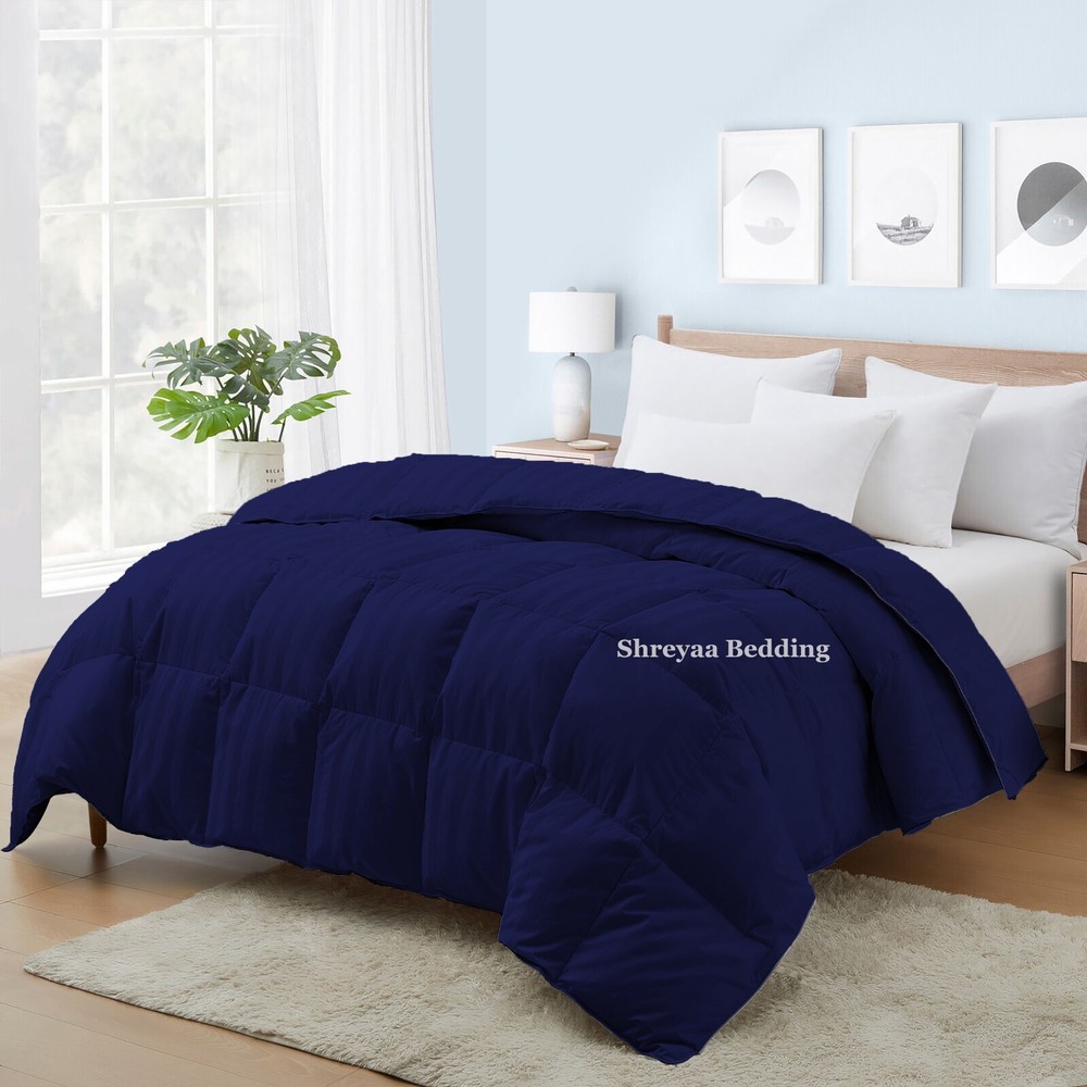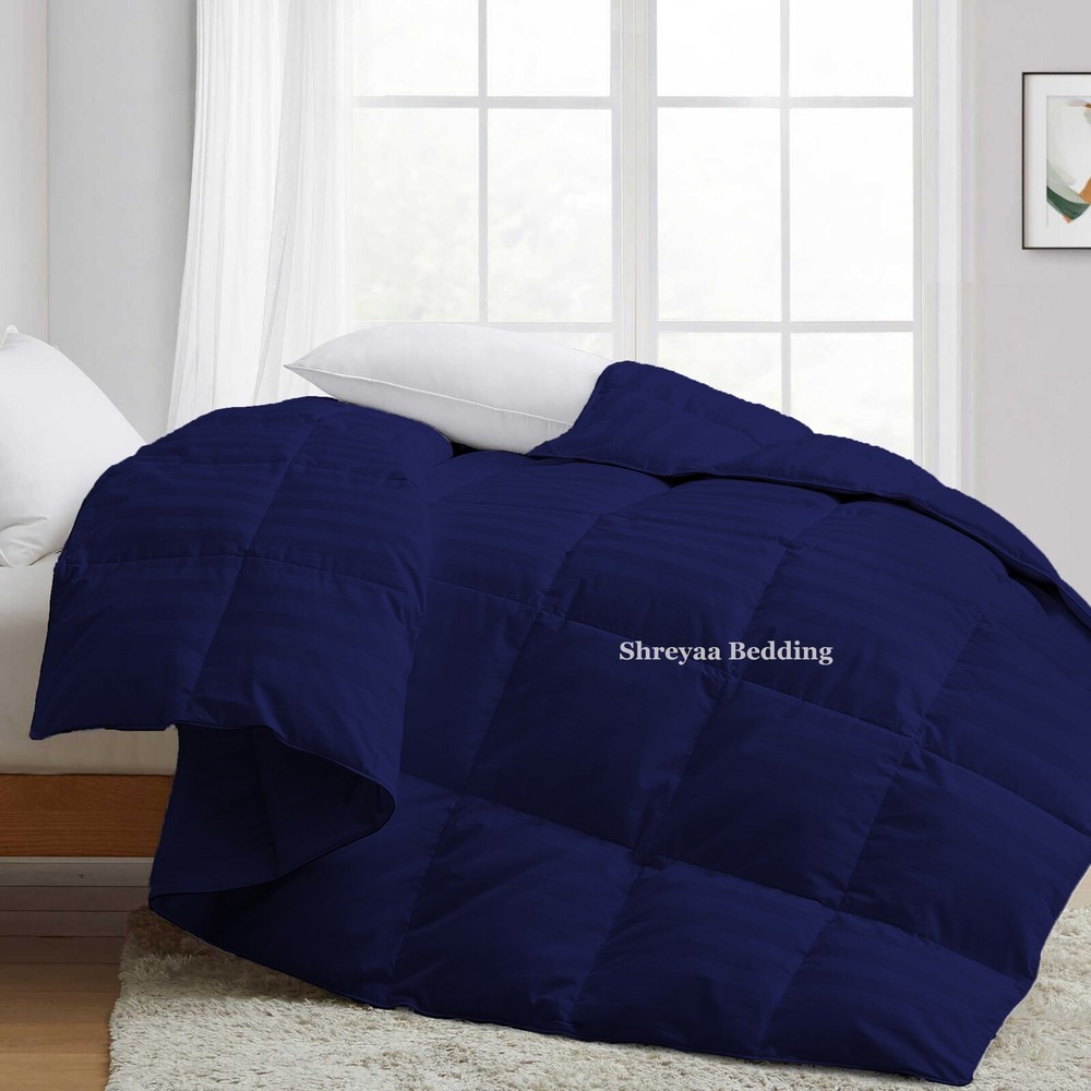 Luxury Navy Blue Striped Goose Down Alternative Comforter Cal King