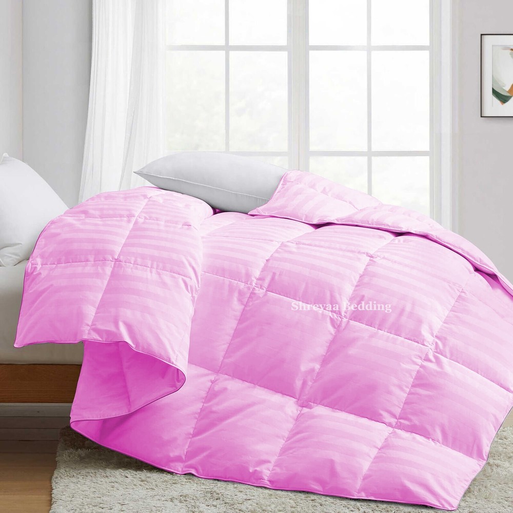 Luxury Soft Stripes Pink Goose Down Alternative Queen Comforter