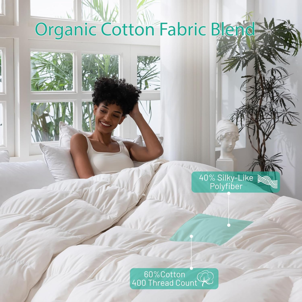 Store New Arrivals Add to Favorite View Feedback Contact Luxury down Feathers Fiber Comforter King Size - 750 Fill Power All Season down Duvet Insert, Ultra-Soft Hotel Collection White Comforter, Baffle-Box Design - Noiseless - Medium Warmth. Product Information Item model number RSS-A-K Style Modern Number of Items 1 Pattern Solid Country of Origin China Blanket Form Duvet Theme Comforter Product Dimensions 106"L x 90"W Material DOWN FIBER,DOWN & FEATHERS, Cotton Blend Age Range (Description) All Seasons All Model Name Feathers Down Comforter King Size Water Resistance Level Not Water Resistant Item Weight 7.63 pounds Fill Material 50% DOWN FIBER 30% DOWN 10% FEATHER FIBER 10% FEATHERS Special Feature Lightweight, Cozy, Breathable Fabric Warmth Description Medium Weight Color White Recommended Uses For Product Indoor,Outdoor,Camping Fabric Type 60% Cotton / 40% Polyester Size King ABOUT US We are proud to be based in the United States, with all of our products shipping directly from within the country. Our selection includes home décor, furniture, sports equipment, tools, pet products, and more. If you have any questions about our products, we’re always happy to help. SHIPPING We are always working hard to ensure your package arrives as soon as possible. Please understand that some factors like weather, high postal traffic, and the performance of shipping companies are outside of our control. We offer free shipping to the lower 48 states and ship within 2 business days of payment, usually sooner. For shipping outside of the continental USA, we only use eBay's Global Shipping Program. The item is shipped to IL and then sent to the rest of the world. RETURNS We offer Free Returns for 30-Days on items which you are not completely satisfied with. You have the option for a full-refund or an exchange of the item. CUSTOMER SATISFACTION We try our very best to make sure every customer is completely satisfied. If there's a problem, message us! We're happy to help.