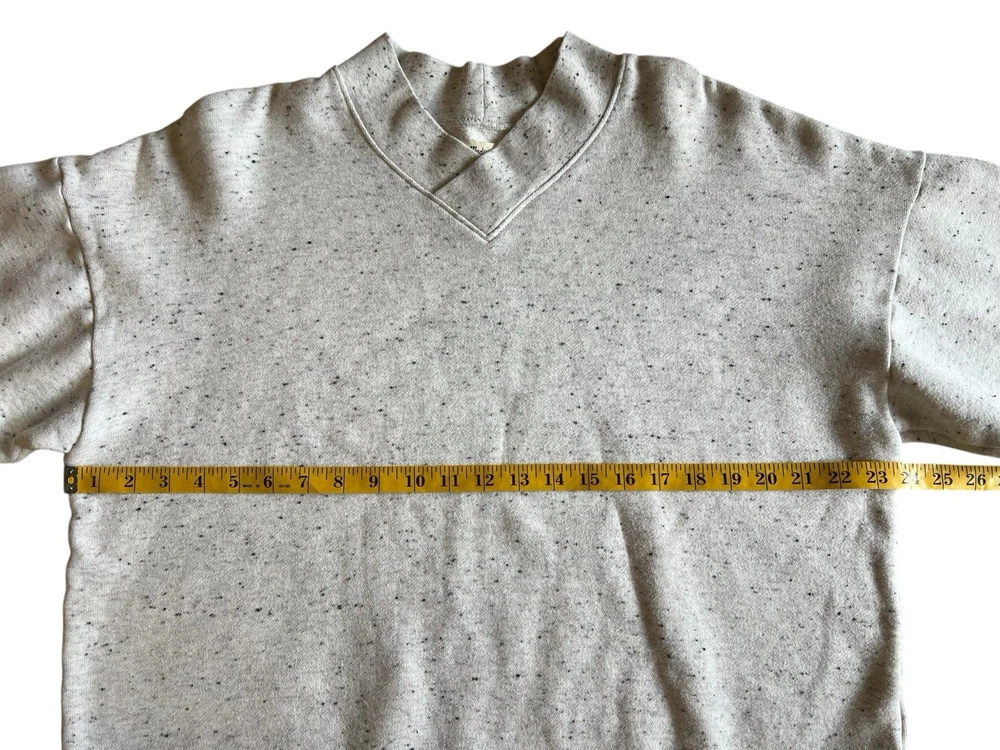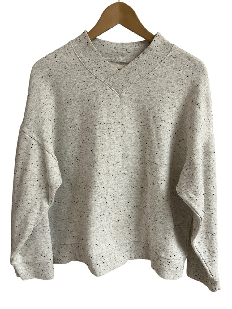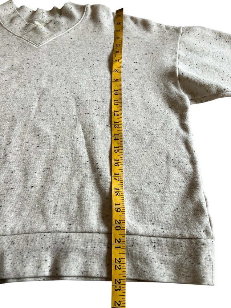 Please see photos for measurements and let me know if you have any questions! Brushed on both sides for the coziest feel, this fabric is made of a blend of organic cotton and recycled poly. This sweater has a high V-neckline. Throw it on with a leather jacket and your favorite jeans for a comfy-yet-edgy look. • 85% Organic Cotton, 15% Recycled Polyester Fleece • Item NI068