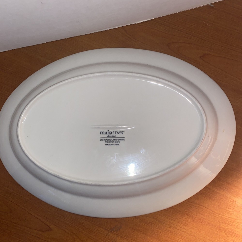 MAIN STAYS HOME OVAL SERVING PLATTER MEASURES ABOUT 14" LONG x 10' WIDE EXCELLENT USED CONDITION NO CHIPS OR CRACKS OR CRAZING, SILVERWARE MARKINGS XX...