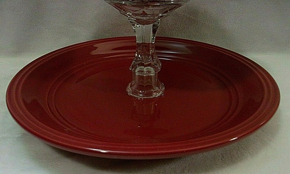 This offer is for a MAINSTAYS 2 TIER DIP and CHIP BOWL. The Bowl is/has: Made of Red Glazed Stoneware and Clear Crystal Two (2) Tiers One Large Circular Plate with Curved Up Edges Pretty Carved Clear Crystal Pedestal Made in China ***Please Note: Although the Bottom of the Plate indicates that the Piece is Dishwasher and Microwave Safe, I would not Recommend it. It appears that the Bowl and Pedestal were attached to the Plate after the original purchase. Placing this item in the Dishwasher or Microwave could cause the pieces to come apart. Would recommend Hand Washing.*** The Dip and Chip Bowl measures 7-1/4" tall. The Upper Bowl is 2-3/4" high, and 6-1/8" in Diameter. The Pedestal measures 4" high, and the Bottom Plate is 10-3/4" in Diameter. Perfect for Chips and Dips, or Appetizers and Dipping Sauce!! Please email with me with any questions. Thank you so much for your interest! TERMS: Buyer to pay shipping for 3 lbs. 15 oz. Choose from the following Shipment Options: USPS Priority Mail or USPS Parcel Select/Ground Advantage. Buy It Now purchases will require immediate payment. Inventory # - X522 Bx D5