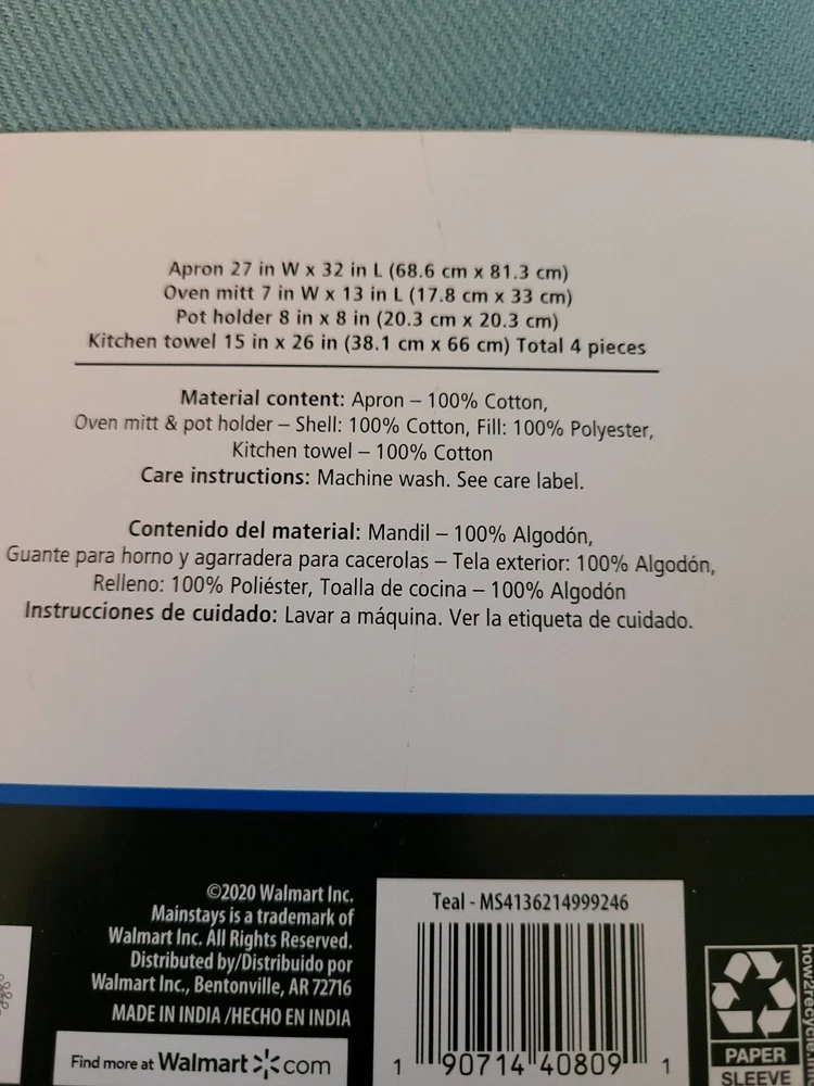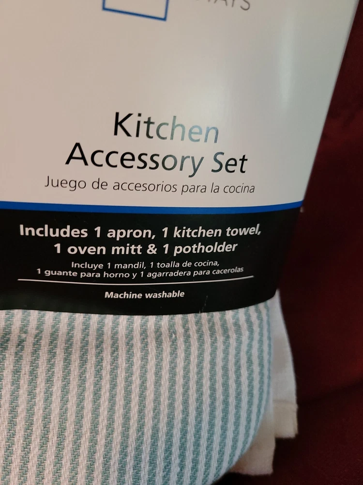 GREAT GIFTS UNDER $20. MAINSTAYS 4 PIECE KITCHEN ACCESSORY SET APRON TOWEL MIT & POTHOLDER NEW. THIS IS A GREAT SET WOULD MAKE A NICE GIFT WE ARE ALWAYS ADDING, SO CHECK BACK OFTEN! SAVE AS FAVORITE ALSO CHECK OUT OUR OTHER STORE B-UNIQUE TREASURES AND COLLECTIBLE. MOST OF MY ITEMS IF NOT NEW, ARE FROM ESTATES, PRIVATE COLLECTIONS OR AREA ESTATE AUCTIONS. I WILL TRY TO DESCRIBE THE OVERALL CONDITION. BUT I DO NOT HAVE ALOT OF HISTORY ON MANY OF THE ITEMS. I TRY TO SHIP WITHIN THREE BUSINESS DAYS OF PURCHASE. I DO UTILIZE RECYCLED PACKAGING WHEN POSSIBLE TO CUT SHIPPING COSTS. I WILL BE LISTING ALOT OF DIFFRENT ITEMS SO PLEASE MARK ME AS A FAVORITE AND CHECK BACK OFTEN.