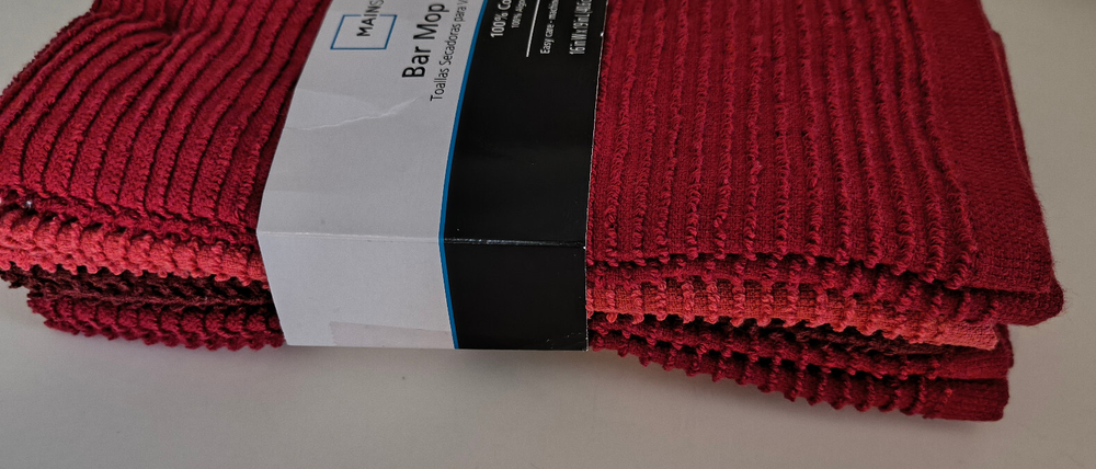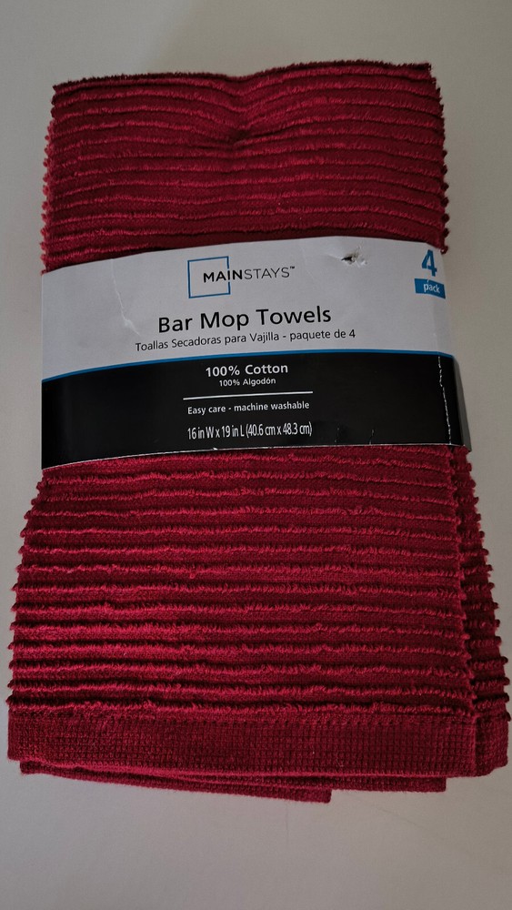 Elevate your kitchen experience with the Mainstays Bar Mop Towels, a practical and stylish addition to any busy space. Crafted from 100% cotton these ribbed towels are designed to combine durability with a modern aesthetic. The vibrant red variety brings a pop of color to your kitchen making them as decorative as they are functional. This pack includes four towels each measuring 16 inches in width and 19 inches in length, ideal for a multitude of uses from wiping down counters to drying dishes. Machine washable for easy care, these towels are constructed to meet the demands of daily use while maintaining their fresh look.