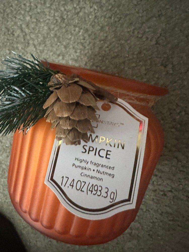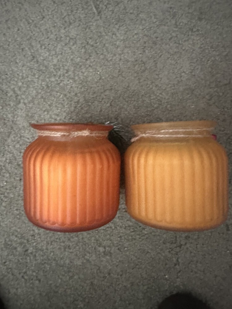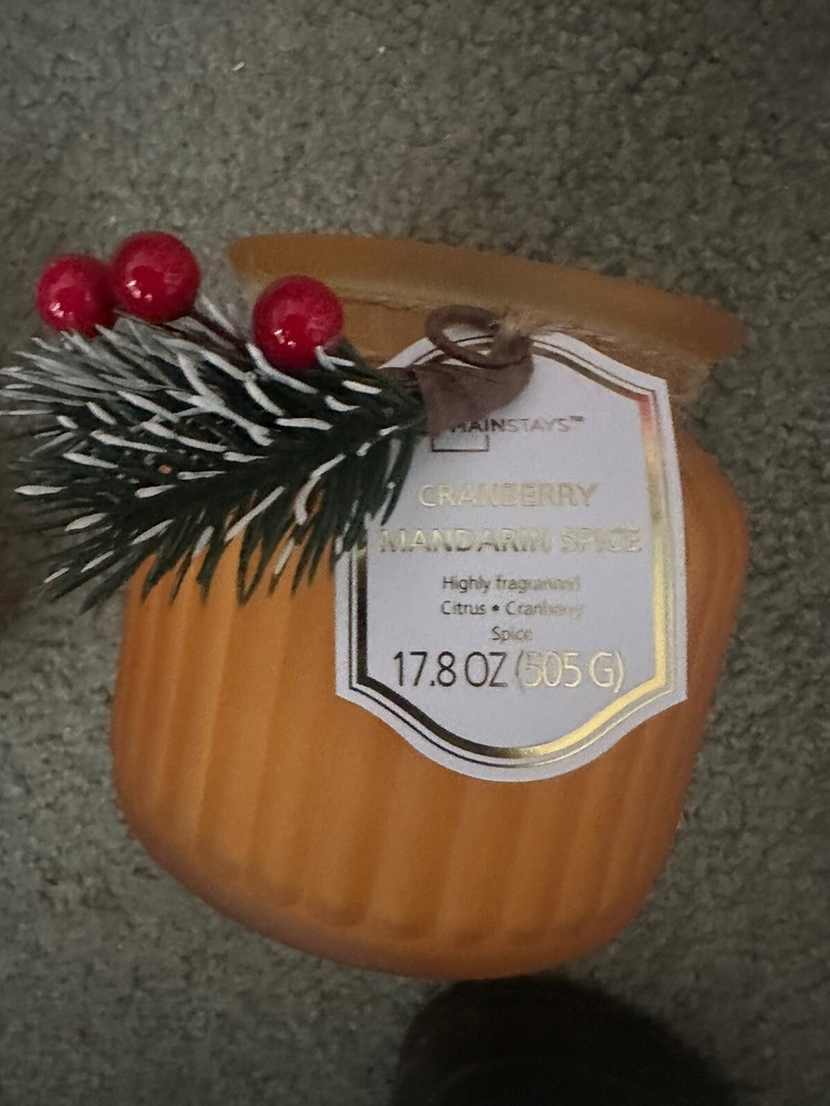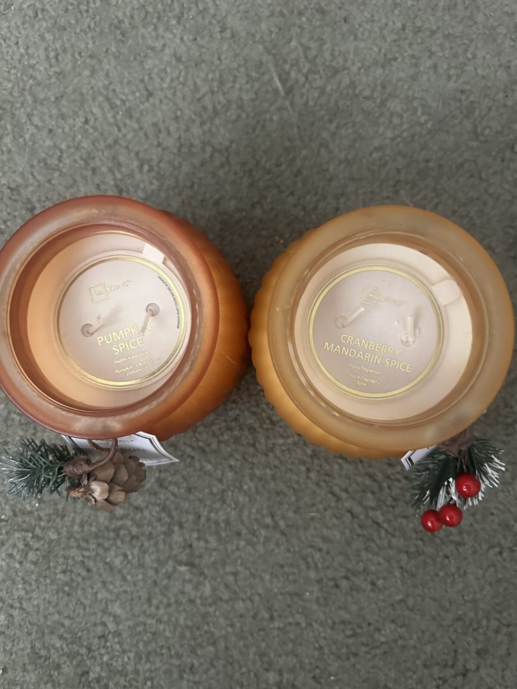 NEW--MAINSTAYS GLASS JAR CANDLES—CHOICES—DECORATIVE, FROSTED GOLD “CRANBERRY MANDARIN SPICE" CANDLE or FROSTED ORANGE “PUMPKIN SPICE” CANDLE. GLASS JAR CANDLES WITH REMOVABLE FIR TWIG FOR YEAR-ROUND ENJOYMENT. LARGE 17.4 OZ. SIZE. 4 1/2" X 4 1/4" TWO-WICK. COMES COMPLETE WITH DUST COVER. BURN TIME—70-75 hrs. HIGHLY FRAGRANCED WITH A COMBINATION OF —-~~SCRUMPTIOUS CRANBERRIES & FRUITY MANDARIN ORANGES or ~~A TEMPTING FLAVOR OF PUMPKIN, NUTMEG & CINNAMON. BOTH PRESENTING A VERY PLEASANT, SOOTHING AROMA. PERFECT FOR ANY ROOM OR FOR AROMA THERAPY. THE COMBINATION OF THESE FRAGRANCES ARE ABSOLUTELY BREATH-TAKING. 😊😊Please indicate fragrance choice—CRANBERRY or PUMPKIN—in a note at the time of purchase. 😊😊 SHIPS NEXT DAY🍁🍂