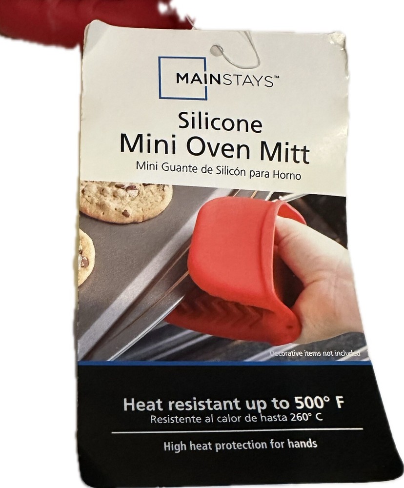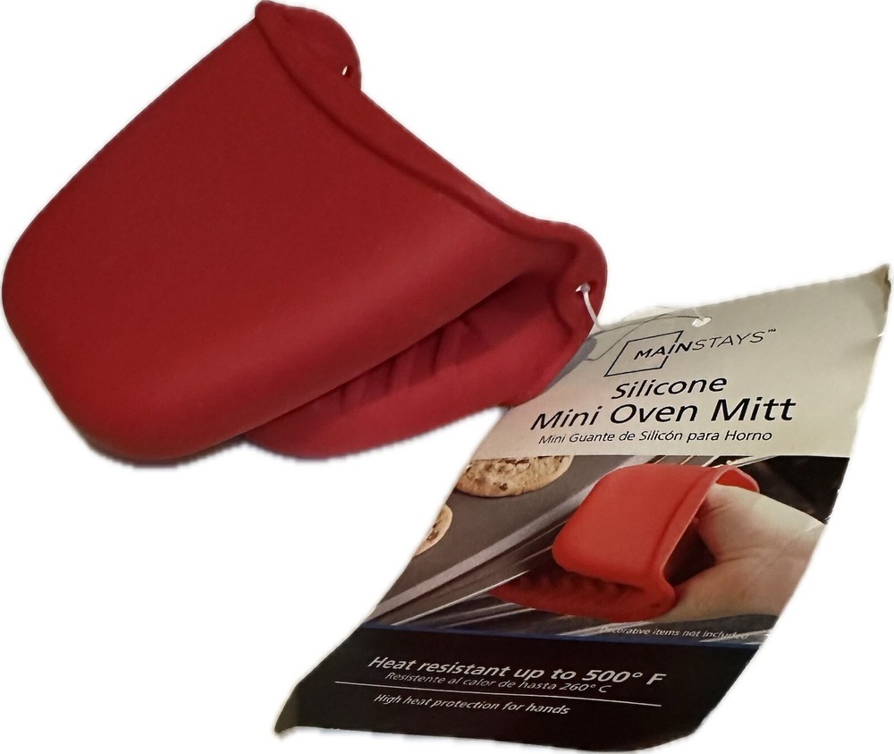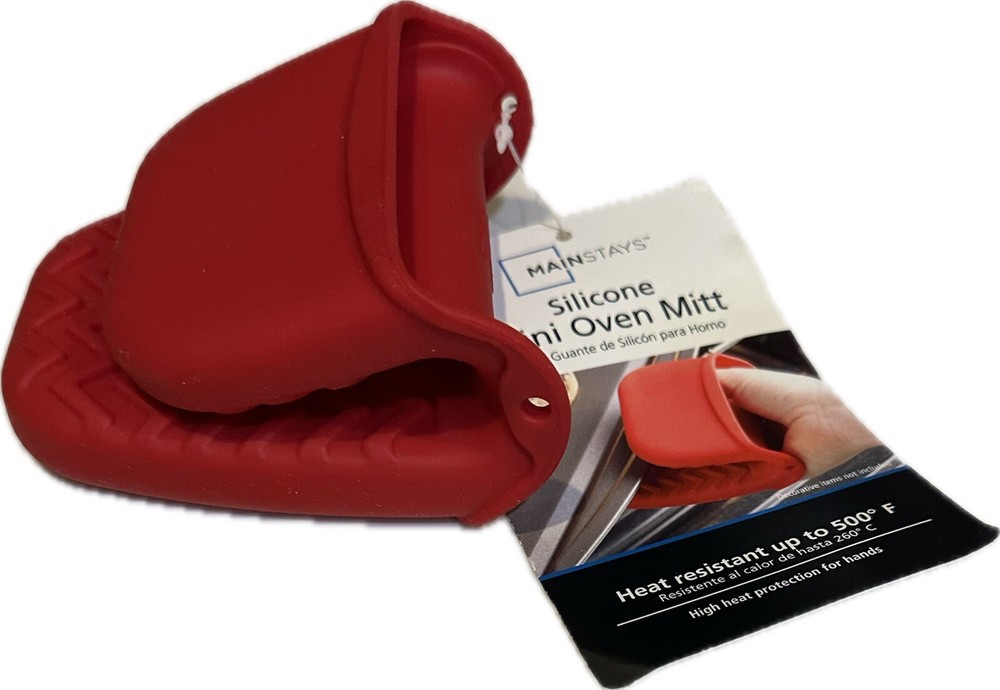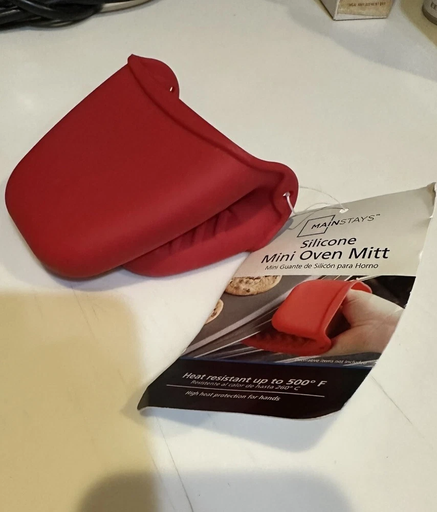 MAINSTAYS MINI SILICONE OVEN MITT POT HOLDER HOT PAD HEAT PROTECTION SHARK BITE Heat resistant up to 500°F. High heat protection for hands. Perfect for baking and cooking. Tag shows a little shop wear around the edges