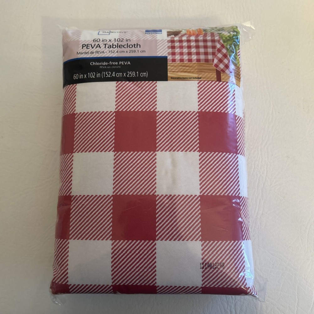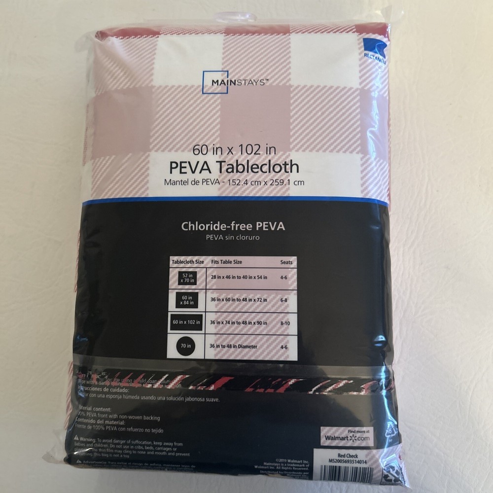 Add a touch of rustic charm to your dining table with this Mainstays PEVA tablecloth. Featuring a classic red and white check pattern, this rectangle-shaped tablecloth is made of durable vinyl material and measures 60 inches in width and 102 inches in length. Perfect for holidays and farm-themed events, this tablecloth is sure to impress your guests with its festive design. Crafted in China, this tablecloth is a must-have for any adult who wants to add a touch of nostalgia to their dining experience. Whether you're hosting a formal dinner party or a casual get-together with friends and family, this tablecloth is sure to set the stage for a memorable meal.