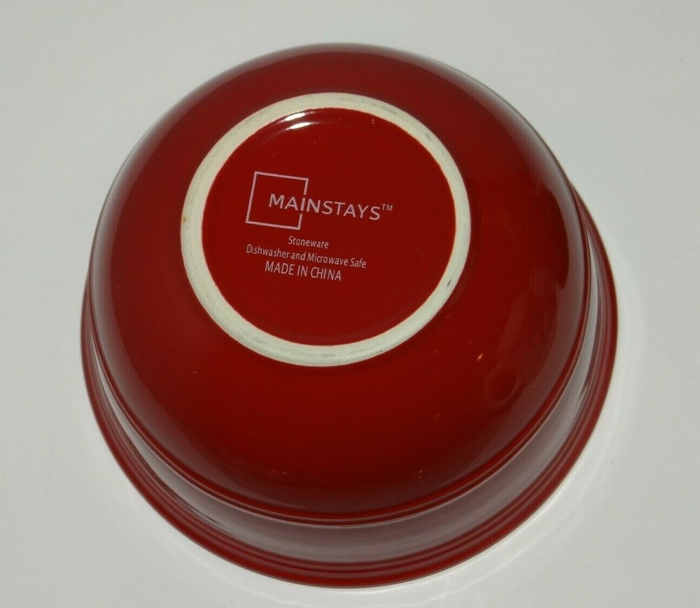 MAINSTAYS Rainforest Red Sedona SALAD DESSERT Cereal Bowl Embossed Ring Used and in great condition. No chips or cracks. Dim. 6 1/8"Dia. International buyers are welcome. Thanks for shopping.
