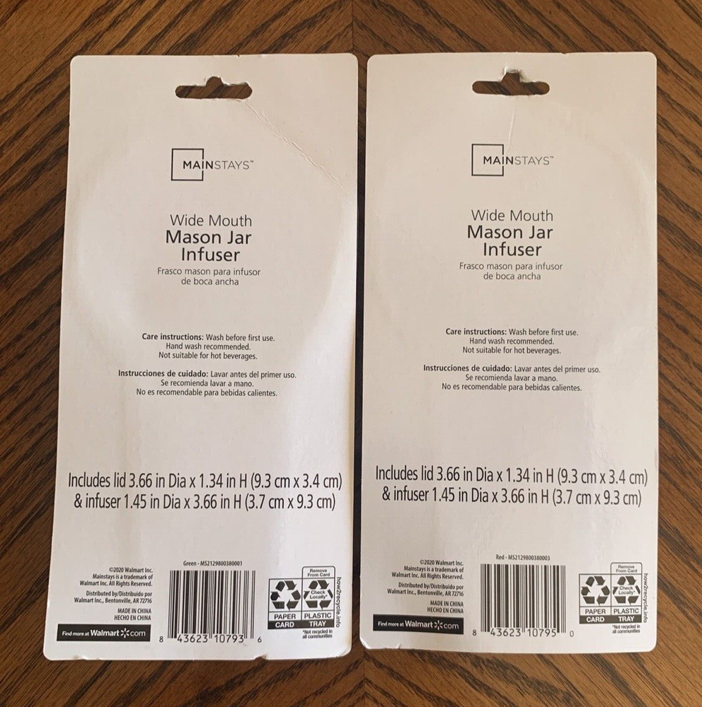 MAINSTAYS Wide Mouth Set of 2 Mason Jar Infuser * Green & Red ** New in Package