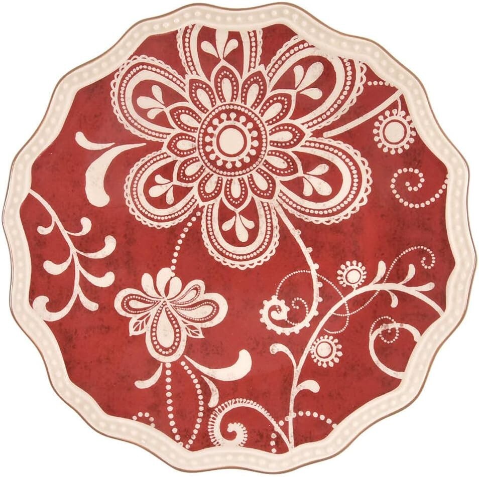 "MARIBETH" by Pier 1 Imports 8 7/8" Diameter Red with creamy white floral pattern & dotted trim NEW