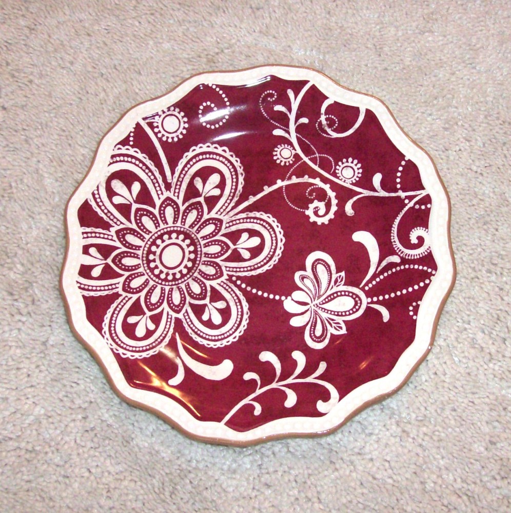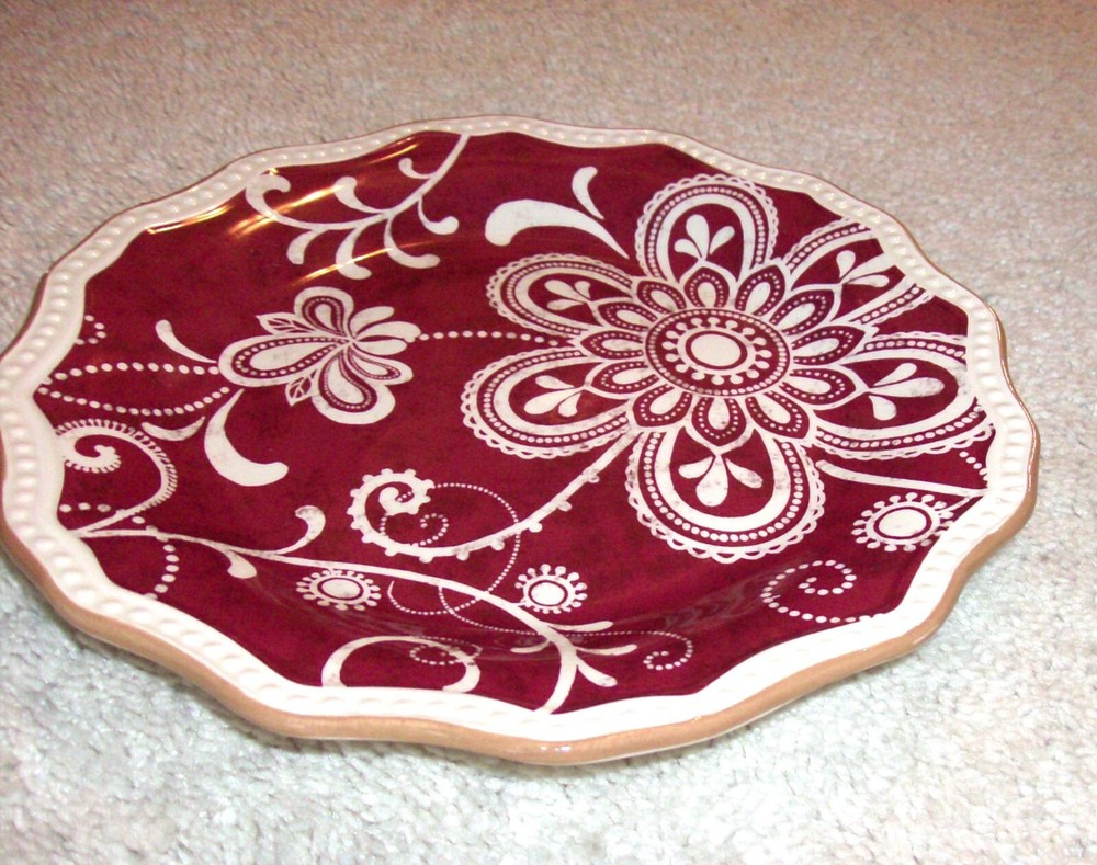 "MARIBETH" by Pier 1 Imports 8 7/8" Diameter Red with creamy white floral pattern & dotted trim NEW...