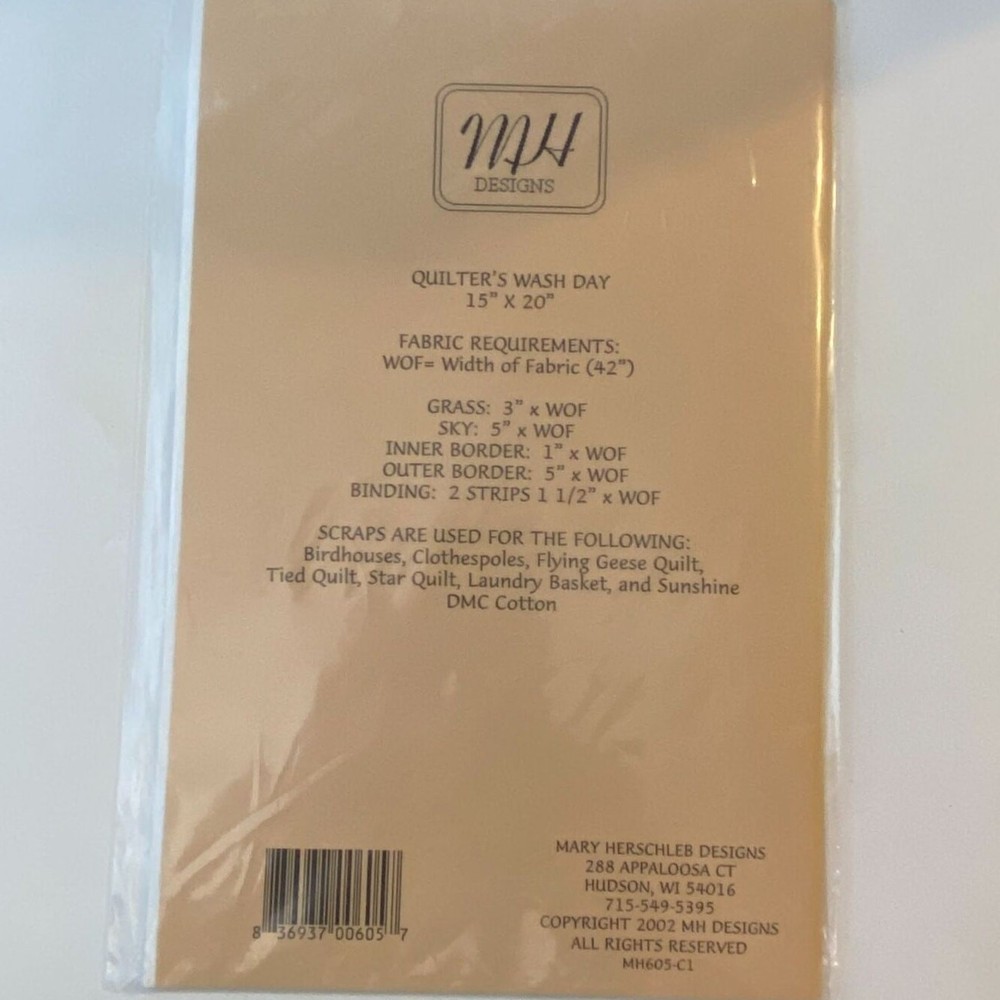 <![CDATA[<div>MH Designs Quilter's Wash Day Pattern MH605 Uncut Complete 2002 by Mary Herschler Size: 15" x 20" New Condition (see pics for details) Features: • Flaws: none • We are happy to answer your questions • Shop similar items in our store & bundle • Consider making an offer • Super Fast Shipping Actual color may vary slightly based on screen colors lighting & camera We strive to stop climate change & protect our planet Shipping materials are reused & recycled Props used in photos aren't included Examine carefully before buying Summer Clothesline Laundry Folkart Kitchy Home Decor Bedding Farmhouse Sewing Craft Hobby Farm Core Grandma Grannycore Mature Gift
