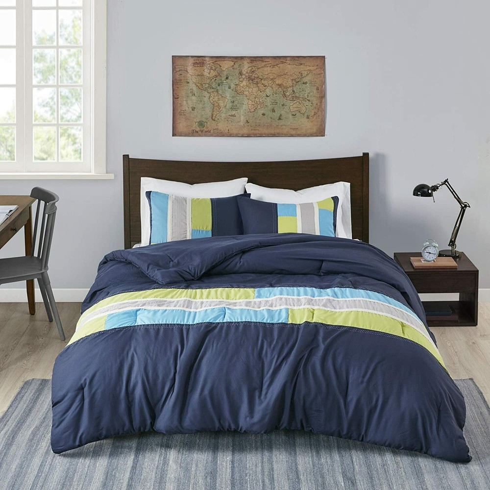 Set includes: 1 comforter, 2 shams, 1 pillow Cover: 100Percent polyester filling: 100Percent polyester Measurements: 86-by-90-inch comforter, 20-by-26-inch shams, 10-by-18-inch Oblong pillow Machine washable All Merchandise Is Authentic And Direct Shelf Pulls From Major Department Stores. You can return any item within 14 days of the date the item is received at the final destination (per the date displayed on the tracking information). See additional details below: To keep our prices competitive though, we hope buyers will research their item well prior to purchase. To help in keeping prices low, returned items will be assessed a small restocking fee. Items that are less than or equal to 13 ozs will be assessed a $3.00 restocking fee. All items heavier than 13 ozs require a $7.00 restocking fee. You can either exchange the item for a new one (if there are others in stock) or choose a cash refund. Buyer will pay shipping for the replacement item Buyer pays return shipping In order to return an item it must be in the same condition as when received (i.e. not worn, scratched, etc.) Items are rarely returned. This is because most buyers ask any questions they have about the item prior to purchasing. All advertised sizes come directly from the manufacture sales tags. The seller will not make any recommendations concerning which size will fit the buyer well. The seller will only provide appropriate measurements when requested by the buyer. Buyers should try on the item (or a similar item) at a local retailer before purchasing if he/she has questions as to whether or not it will fit well. If you need to return an item due to sizing issues, follow the seller's standard return policy. A high percentage of items shipped to Express Parcel Services or to the 33126 Zip Code are lost or arrive over a month after the scheduled arrival date. Therefore, any buyer wanting packages sent to Express Parcel Services or the 33126 Zip Code will be assessed an additional fee to cover the cost of insuring the package.