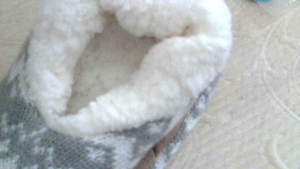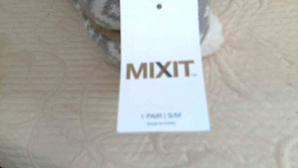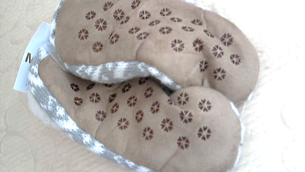 Very nice Knit Slipper Cozies that are a Women's Size Small 5/6M. They are a skin print knit in gray and white. The bottoms are a brushed fabric with slip resistant nubs in a brown fabric. They are lined in a white poly fleece fabric. They do have a slight stretch to them and are pull on. They are brand new with tags. Weight: 4 oz unpackaged. USA Seller............ Happy Shopping Always...............