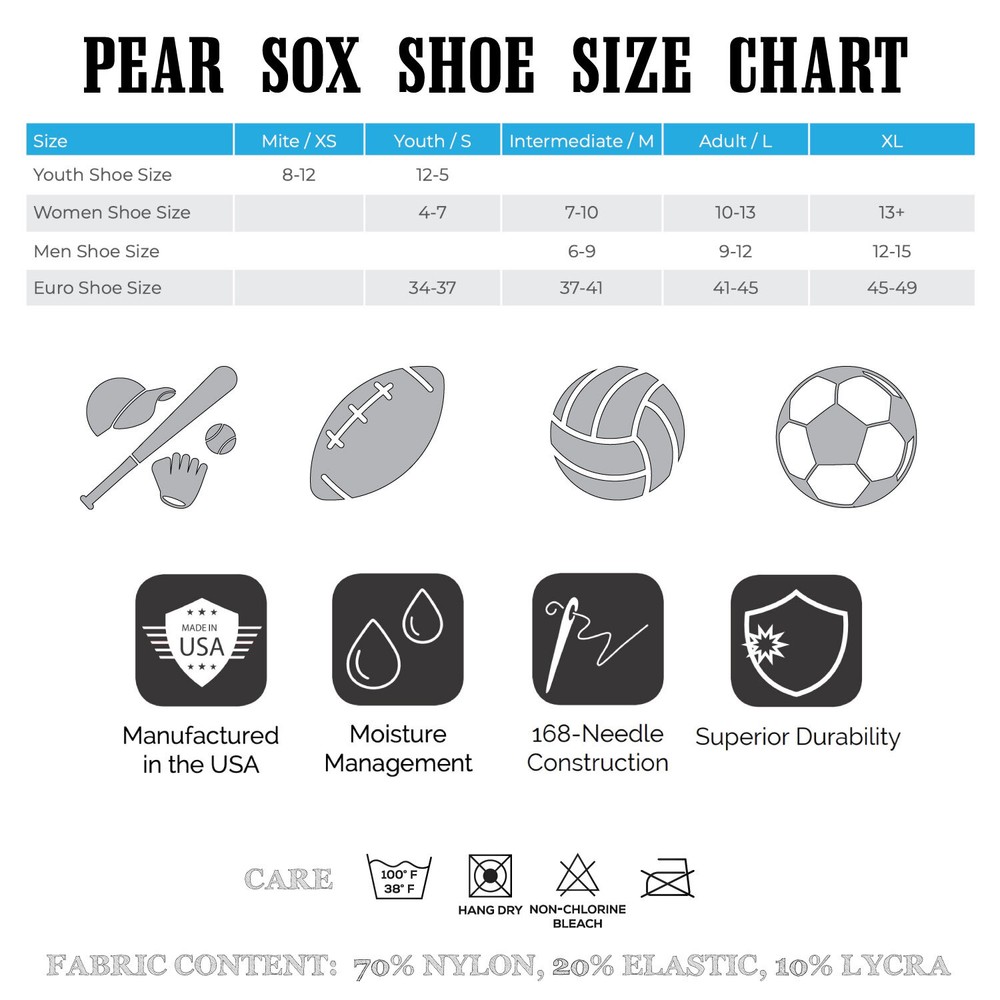 MK Socks Extreme Over the Knee Sports Socks - White Lightweight and durable Sports socks made to go over the knee. Made in the USA Small - Youth 12-5 Medium - Adult 6-9 Large - Adult 9-13 Product Details Brand MK SOCKS Color White Size S Style Over the Knee Manufacturer PEAR SOX Product Type Athletic Socks Mpn MK-XTRM-W-S Dry, Lightweight Fabric: Moisture Management Yarns Compression Zones and Double Welt Top Make these Stay Put Ergonomic Cushioning in the Foot for Durability and Comfort CUSTOM options: Color and Logo Check out my other items. - Powered by