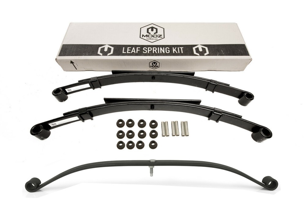 This set of front and rear heavy-duty leaf springs is a perfect fit for your Club Car DS golf cart. The manufacturer part number for this set is G1-6000+G1-6100-CDS and it is compatible with a range of years from 1987 to 2006. The bundle description is complete with all the necessary parts for installation. The MODZ brand guarantees quality and durability, making this a reliable choice for your golf cart. The set is an OEM replacement, ensuring that it will fit perfectly and function just like the original. Upgrade your golf cart's suspension with this set of leaf springs and enjoy a smoother ride on the course.
