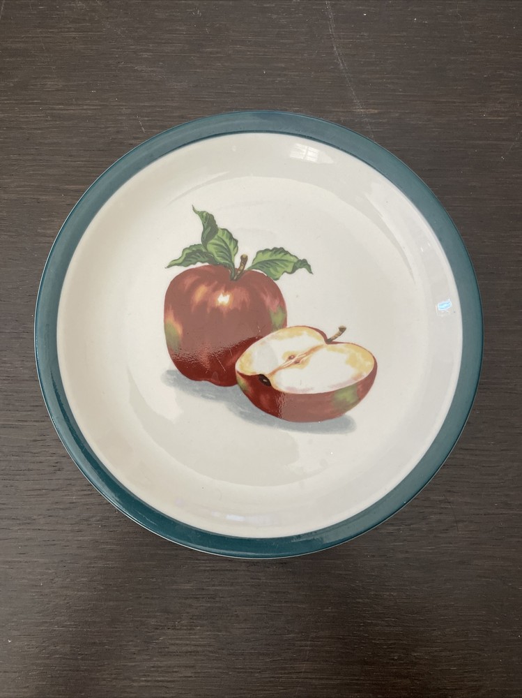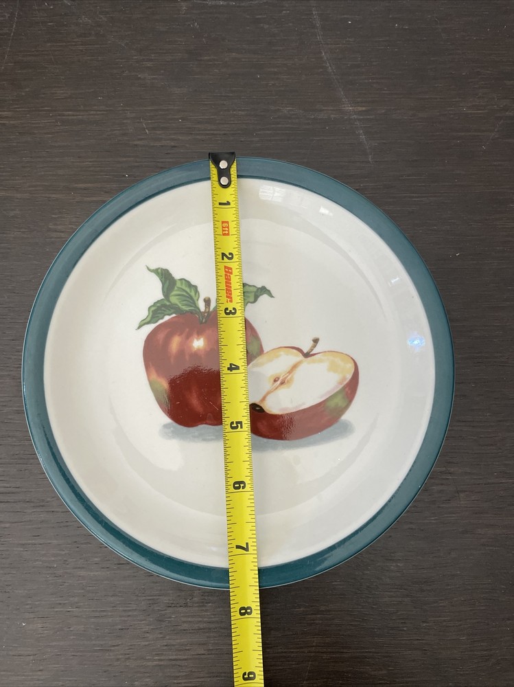 MSY2 Mainstays Home Apples Seeds Dinner Plate 10" Green Rim. Condition is Used. Shipped with USPS Ground Advantage....