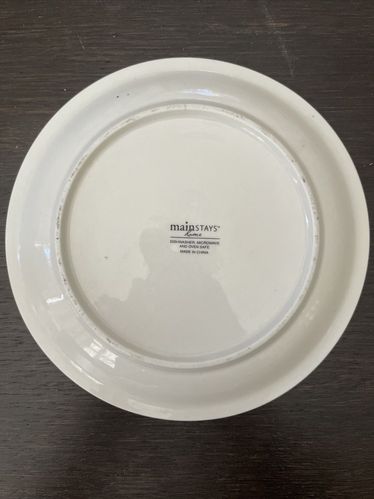 MSY2 Mainstays Home Apples Seeds Dinner Plate 10" Green Rim. Condition is Used. Shipped with USPS Ground Advantage.