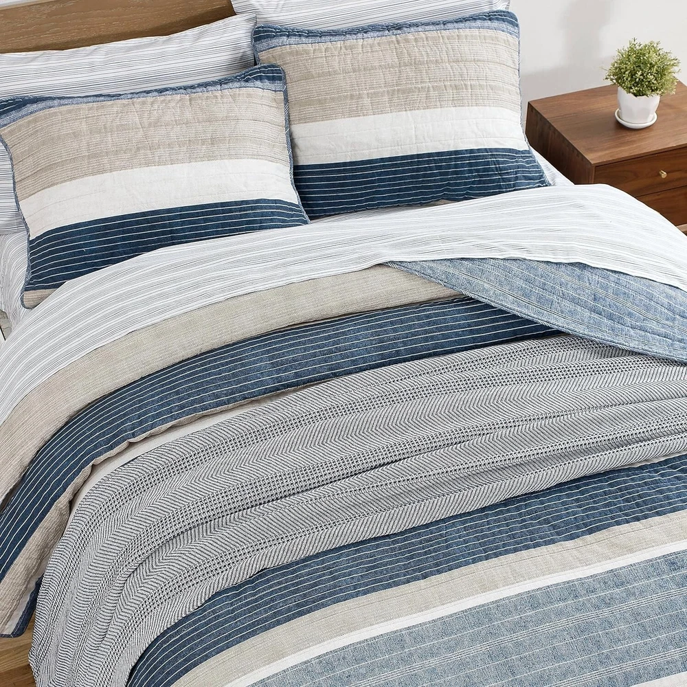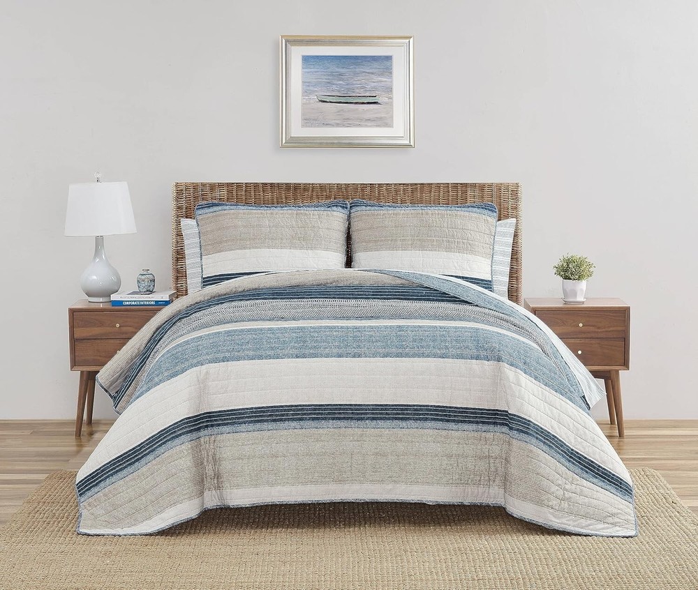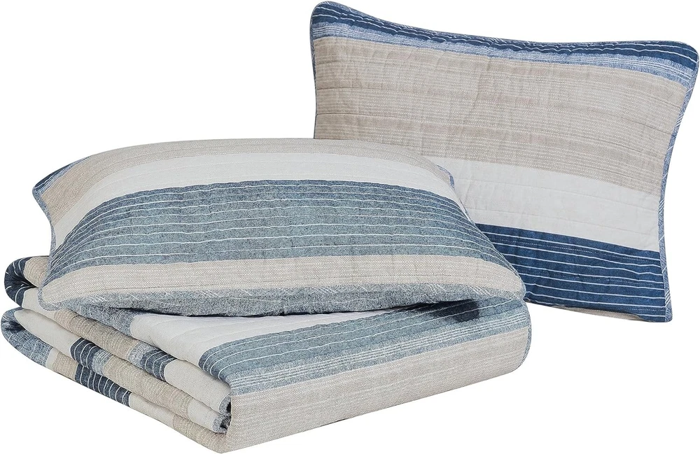 Machine Washable King Quilt Set - Cozy Cotton Bedding for Year-Round Comfort ‹ › ‹ › ‹ › ‹ › ‹ › ‹ › ‹ › ‹ › ‹ › ‹ › ‹ › Machine Washable King Quilt Set Cozy Cotton Bedding for Year-Round Comfort Product Details: Material: 100% Cotton Construction - ideal for year-round use Set Includes: One quilt and two king shams Quilt Fill: 80% Cotton & 20% Polyester - blended for durability Features: Fully reversible quilt to a blue striped design Dimensions: Quilt - 96"L x 104"W, King Shams - 21"L x 37"W Care: Machine wash cold, tumble dry low Elegant Design: Paying tribute to the essence of classic l fashion, the Ridgeport Quilt Set introduces sandy hues of khaki gracefully paired with denim blue and navy. The captivating over-scaled striping, coupled with added texture, affords your bedroom a sophisticated and cozy vibe. The quilt reverses to reveal a denim blue printed stripe design on a textured background, facilitating a seamless transition between styles. Year-Round Comfort: Crafted from quality 100% cotton, this quilt set is lightweight and perfect for keeping you comfy in the warmer months or serving as a luxurious layering piece during winter's chill. The rounded corner shams add a delicate sensibility, featuring the reverse print integrated into the binded edges for a polished finish. Designed with your convenience in mind, the shams include a 2-piece back closure for easy removal. Why Choose the Machine Washable King Quilt Set? Versatile Look: Transform your bedroom aesthetics with reversible designs. Ease of Care: Enjoy hassle-free maintenance with a machine-washable fabric. Quality Comfort: Immerse yourself in the durable, cozy appeal of cotton bedding. Sophisticated Style: Elevate your home decor with timeless, elegant patterns. Transform your sleep environment with our Machine Washable King Quilt Set—a perfect blend of aesthetic charm and comfort. Indulge in the luxury you deserve, and order yours today! Shipping Free & Fast Shipping - We offer free shipping to most of the USA with a normal delivery time of 3-7 days. However, due to the current situation, additional delivery time (up to 3 weeks) may be required for some items. Alternative Carriers - We may use alternative carriers (e.g. USPS, FedEx, UPS, etc.) to ensure your package arrives safely and on time. Due to the use of multiple carriers, we are unable to provide a tracking number automatically. Handling Time - Orders are processed and shipped within 1-2 business days of receiving cleared payment. Shipping Restrictions - Shipping to Alaska, Hawaii, Puerto Rico, Guam, and other US territories may incur shipping charges or delivery restrictions. Please contact us before ordering, or your order can be refunded/cancelled. State Restrictions - There may be restrictions based on your state of purchase. For example, certain items may not be shipped to California due to state regulations. Contact for Tracking Updates - If you require tracking updates or have any concerns about the delivery of your order, please feel free to contact us, and we will be happy to assist you. Return 30-Day Hassle-Free Returns - We want you to be completely satisfied with your purchase. If you are not, you can return the item within 30 days of receiving it for a full refund or exchange. Easy Return Process - To start a return, simply contact us and we will provide you with a prepaid return shipping label and detailed instructions. Restocking Fee - There are no restocking fees for returns. However, the buyer is responsible for return shipping costs if the return is not due to a seller's error. Refund Processing Time - Refunds will be processed within 5 business days of receiving the returned item in its original condition. Payment We accept all major credit cards, PayPal, and Apple Pay for your convenience. Your payment information is secure and encrypted to ensure a safe and seamless transaction. Please complete your payment within 3 days of purchase to avoid any delays in shipping. Feedback Your feedback is extremely important to us. We strive to provide the best products and customer service possible. If you are satisfied with your purchase, please take a moment to leave us a positive review. If you have any concerns or issues with your order, please contact us before leaving negative feedback. We are committed to resolving any problems and ensuring your satisfaction. Contact Us If you have any questions or concerns, please feel free to reach out to our customer support team. You can contact us through the eBay messaging system. We are available Monday to Friday, 9:00 am to 5:00 pm EST, and we will do our best to respond to your inquiry within 24 hours. Buy it now and enjoy a pleasant shopping experience! UPC: Not Set Item Length: Not Set Item Width: Not Set Unit Quantity: 8.38 Material: 100% Cotton,Cotton,Cotton & Polyester Blend Features: Machine Washable,Machine Wash,Tumble Dry Low,Reversible,Lightweight,Durable,Rounded Corner Shams,2-Piece Back Closure,Pre-Washed Character: Not Set Theme: Fashion Care Instructions: Dry Clean Only,Machine Wash,Machine Wash Cold,Tumble Dry Low Department: Adults,Unisex Room: Bedroom Labels & Certifications: Not Set Brand: Unbranded Size: King Type: Quilt Set Color: Ridgeport Blue Pattern: Striped Style: Casual Fill Material: Not Set Country/Region of Manufacture: Not Set MPN: Not Set Character Family: Not Set Shape: Rectangular Insulation: All Seasons Closure Type: No Closure GSM (Grams per Square Meter): Below 150 Thread Count: 136 Drop Length: Not Set Model: Not Set Product Line: Not Set Unit Type: lb Personalize: Not Set