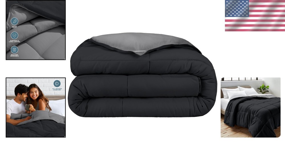 Machine Washable Reversible Full Comforter - Cozy Black/Grey for All Seasons < class="slides"> ‹ › ‹ › ‹ › ‹ › ‹ › ‹ › ‹ › ‹ › ‹ › ‹ › ‹ › ‹ › Machine Washable Reversible Full Comforter -Cozy Black/Grey for All Seasons What’s Included: <> One Ultra-Soft Down Alternative Full Comforter (82” by 86”) with 8 Duvet Loops. Reversible Colors: <> Experience flexibility and style with our reversible comforter, available in two elegant colors to match any mood or décor. Masterful Construction: <> Expertly crafted with ultra-soft microfiber, our comforters are designed to resist wrinkling, fading, and stains. Thoughtfully engineered with box stitching to keep the fill evenly distributed, preventing any shifting or bunching, ensuring a cozy and luxurious sleep experience. Durable and breathable for year-round comfort, catering to all seasons. Easy Care: <> Maintenance is a breeze; simply machine wash on a gentle cycle with cold water. Choose to air dry or tumble on low for a freshly fluffed finish. Rest Assured: <> Your satisfaction is guaranteed with our 30-night trial. If you don’t love your Full size comforter, return it hassle-free. Why Choose Our Comforter? Transform your sleeping space into a sanctuary of comfort and style with our Machine Washable Reversible Full Comforter. The luxurious down alternative fill envelops you in warmth, while the exquisite double-sided colors allow you to adapt your room’s aesthetic effortlessly. Perfect for year-round use, this comforter combines functionality with elegance, making it the ideal addition to your home. Don't compromise on comfort; indulge in our comforter today and experience the serene embrace of sleep like never before. Shipping <> <> Free & Fast Shipping - We offer free shipping to most of the USA with a normal delivery time of 3-7 days. However, due to the current situation, additional delivery time (up to 3 weeks) may be required for some items. Alternative Carriers - We may use alternative carriers (e.g. USPS, FedEx, UPS, etc.) to ensure your package arrives safely and on time. Due to the use of multiple carriers, we are unable to provide a tracking number automatically. Handling Time - Orders are processed and shipped within 1-2 business days of receiving cleared payment. Shipping Restrictions - Shipping to Alaska, Hawaii, Puerto Rico, Guam, and other US territories may incur shipping charges or delivery restrictions. Please contact us before ordering, or your order can be refunded/cancelled. State Restrictions - There may be restrictions based on your state of purchase. For example, certain items may not be shipped to California due to state regulations. Contact for Tracking Updates - If you require tracking updates or have any concerns about the delivery of your order, please feel free to contact us, and we will be happy to assist you. Return <> <> 30-Day Hassle-Free Returns - We want you to be completely satisfied with your purchase. If you are not, you can return the item within 30 days of receiving it for a full refund or exchange. Easy Return Process - To start a return, simply contact us and we will provide you with a prepaid return shipping label and detailed instructions. Restocking Fee - There are no restocking fees for returns. However, the buyer is responsible for return shipping costs if the return is not due to a seller's error. Refund Processing Time - Refunds will be processed within 5 business days of receiving the returned item in its condition. Payment We accept all major credit cards, PayPal, and Apple Pay for your convenience. Your payment information is secure and encrypted to ensure a safe and seamless transaction. Please complete your payment within 3 days of purchase to avoid any delays in shipping. Feedback Your feedback is extremely important to us. We strive to provide the best products and customer service possible. If you are satisfied with your purchase, please take a moment to leave us a positive review. If you have any concerns or issues with your order, please contact us before leaving negative feedback. We are committed to resolving any problems and ensuring your satisfaction. Contact Us If you have any questions or concerns, please feel free to out to our customer support team. You can contact us through the eBay messaging system. We are available Monday to Friday, 9:00 am to 5:00 pm EST, and we will do our best to respond to your inquiry within 24 hours. Buy it now and enjoy a pleasant shopping experience! Model: Full Comforter Set Includes: Comforter Material: Microfiber,Polyester Features: Breathable,Reversible,Stain Resistant,Reversible Colors,Ultra-Soft,All Season,Wrinkle Resistant,Fade Resistant Theme: Seasonal Care Instructions: Machine Wash Cold,Tumble Dry Low Department: Unisex Baby & Toddler,Kids,Teens,Adults Room: Bedroom Size: Full Type: Comforter Color: Black Fill Material: Polyester Pattern: Geometric Number of Items in Set: 1 Style: Modern Insulation: All Seasons Season: All Closure Type: No Closure Thread Count: 200 or Less GSM (Grams per Square Meter): Below 150