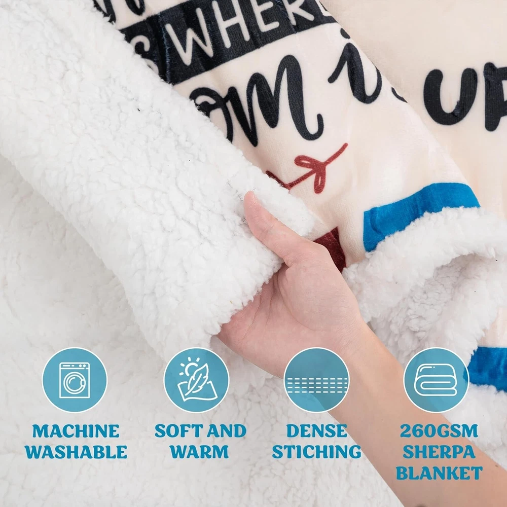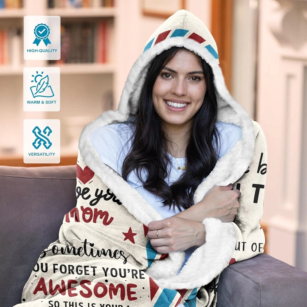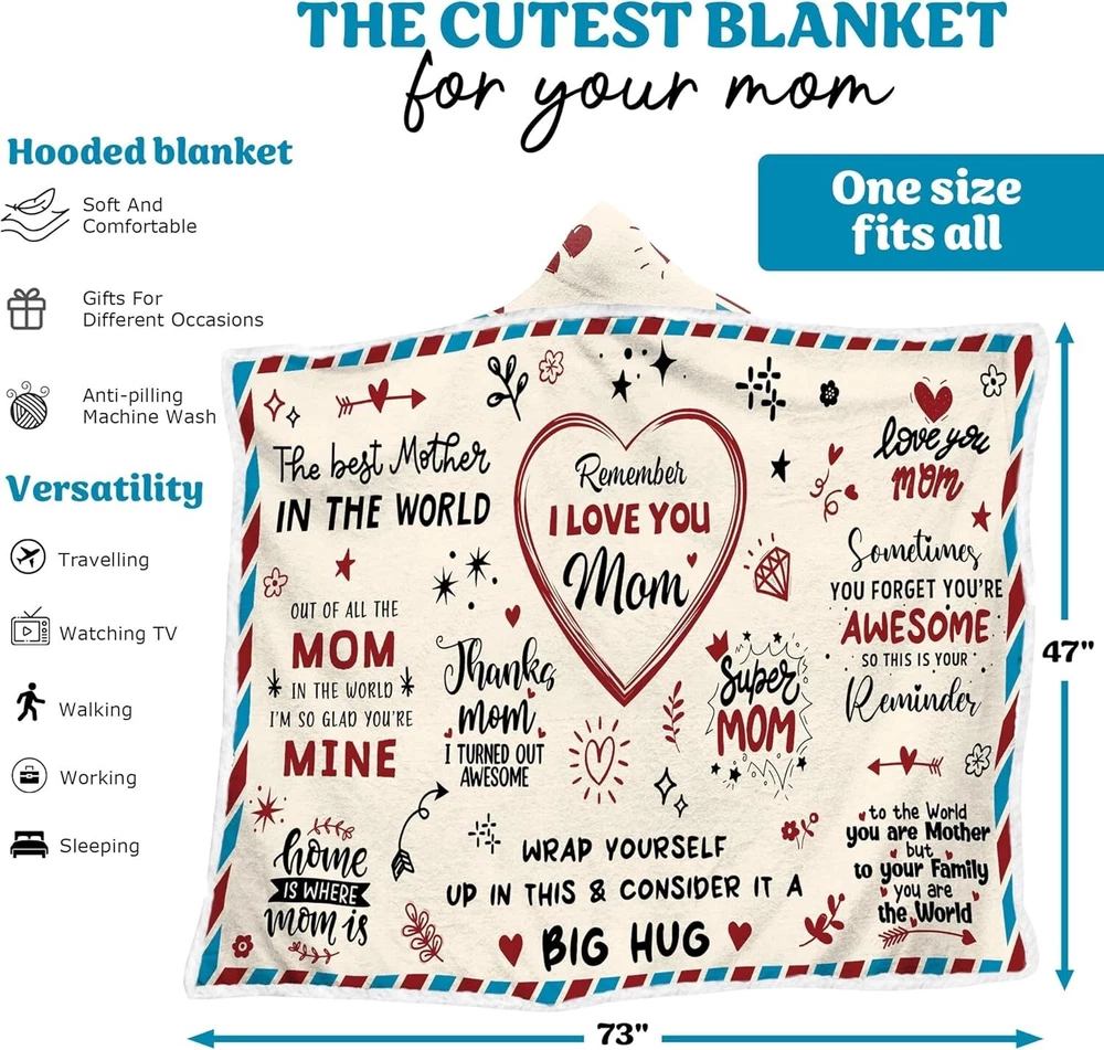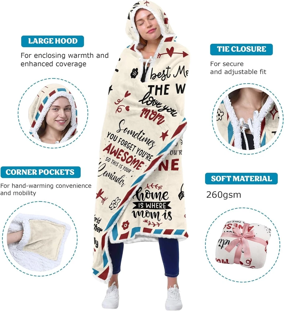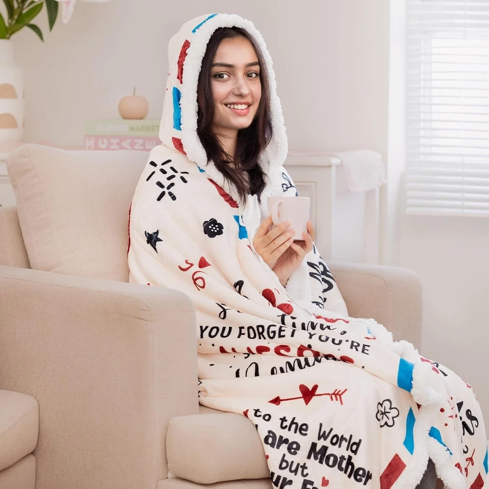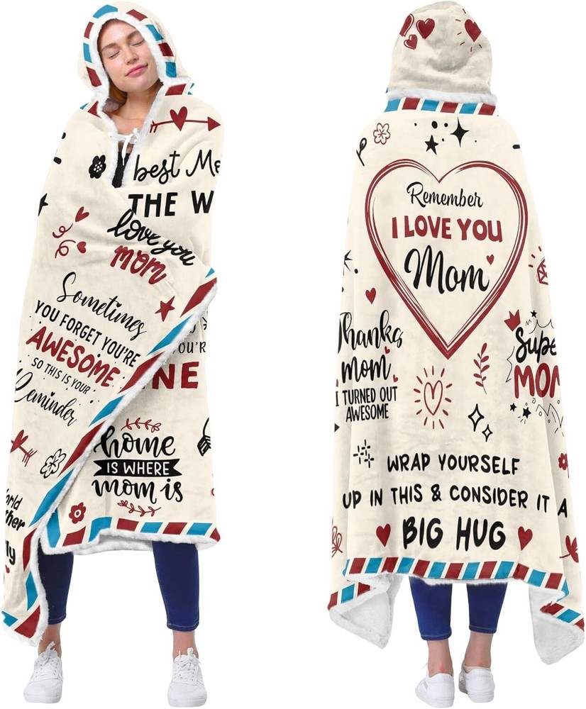 This cozy sherpa hoodie blanket is the perfect gift! My mom absolutely loves how soft and warm it is, and the thoughtful message makes it extra special. It's huge, machine washable, and she wears it all the time. Definitely a hit!