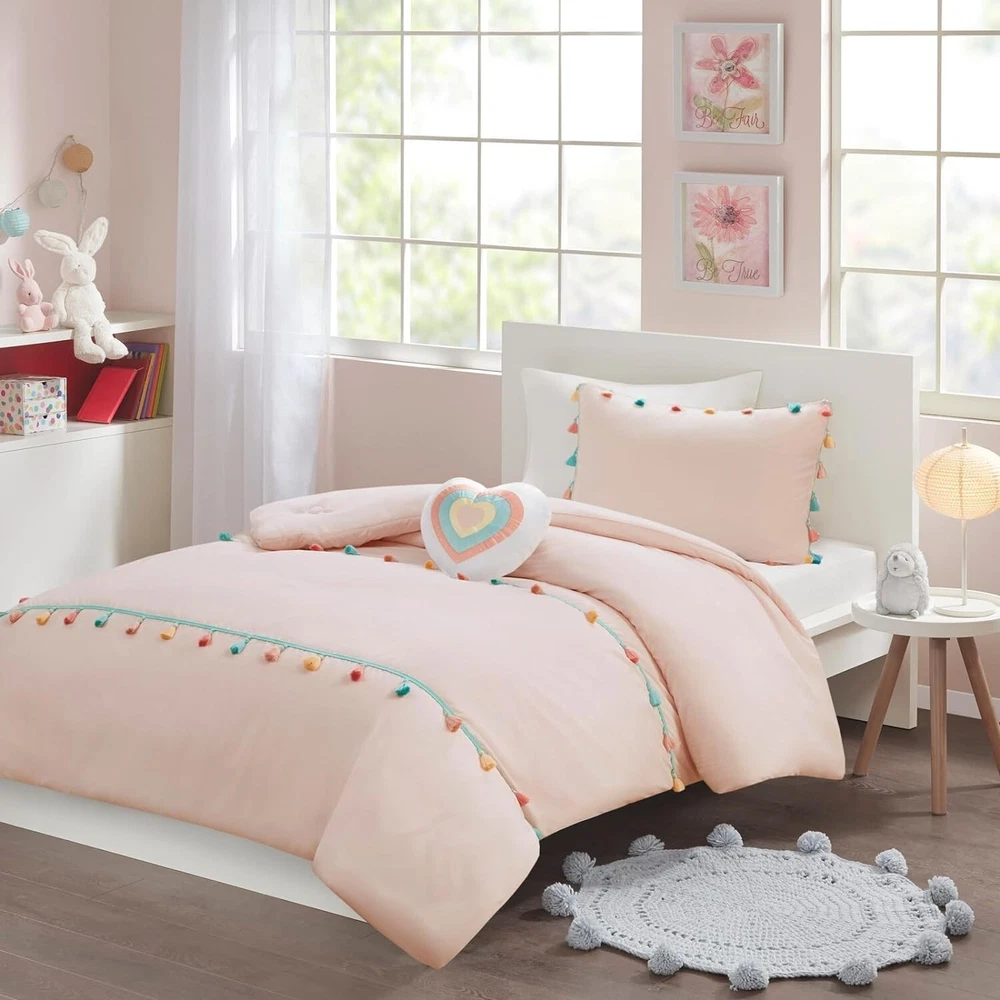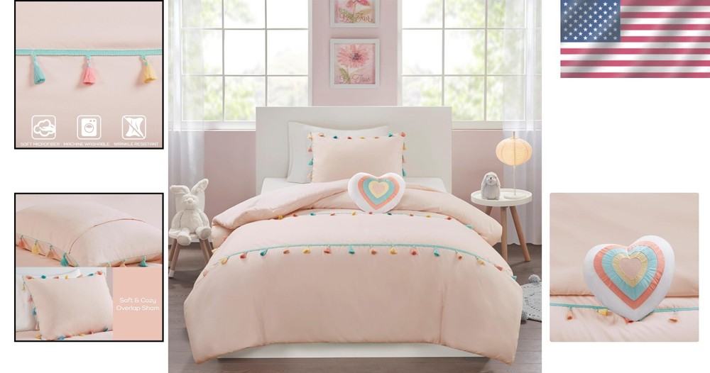 Machine Washable Twin Comforter Set for Girls - Cozy Blush Bedding with Tassels < class="slides"> ‹ › ‹ › ‹ › ‹ › ‹ › ‹ › ‹ › ‹ › Machine Washable Twin Comforter Set for Girls - Cozy Blush Bedding with Tassels Features: 100% Polyester for ultimate softness and comfort. Crafted from brushed microfiber, enveloping you in warmth and coziness. Playful design featuring multi-color pom-pom tassels that complement the lovely blush shade. Adorable heart-shaped embroidered throw pillow included, adding a whimsical touch. Set includes: 1 Comforter (66"W x 86"L), 1 Standard Sham (20"W x 26"L), and 1 Decorative Pillow (13"W x 13"L). OEKO-TEX certified to ensure the highest safety standards and hygienic properties. Benefits: Warm & Welcoming: Perfect for creating a cozy sleeping environment. Whimsical Charm: Adds a fun and cheerful vibe to your child’s bedroom. Easy Care: Machine washable with simple care instructions for hassle-free maintenance. Durable and Hygienic: Naturally stays clean and fresh for longer periods, reducing the need for frequent washing. Why choose our Twin Comforter Set? Transform your child’s bedroom into a cozy sanctuary with our charming Machine Washable Twin Comforter Set. The playful blush bedding, adorned with delightful multi-color tassels and a cute heart-shaped decorative pillow, is designed for both style and comfort. Manufactured from brushed microfiber, it wraps you in soothing softness for a rejuvenating sleep experience. Enjoy the peace of mind that comes from OEKO-TEX certification, ensuring quality and safety for your little one's environment. Plus, with easy-care machine washability, maintaining its beauty and freshness is a breeze. Give your child's space the character and warmth it deserves – order your Twin Comforter Set today! Shipping Free & Fast Shipping - We offer free shipping to most of the USA with a normal delivery time of 3-7 days. However, due to the current situation, additional delivery time (up to 3 weeks) may be required for some items. Alternative Carriers - We may use alternative carriers (e.g. USPS, FedEx, UPS, etc.) to ensure your package arrives safely and on time. Due to the use of multiple carriers, we are unable to provide a tracking number automatically. Handling Time - Orders are processed and shipped within 1-2 business days of receiving cleared payment. Shipping Restrictions - Shipping to Alaska, Hawaii, Puerto Rico, Guam, and other US territories may incur shipping charges or delivery restrictions. Please contact us before ordering, or your order can be refunded/cancelled. State Restrictions - There may be restrictions based on your state of purchase. For example, certain items may not be shipped to California due to state regulations. Contact for Tracking Updates - If you require tracking updates or have any concerns about the delivery of your order, please feel free to contact us, and we will be happy to assist you. Return 30-Day Hassle-Free Returns - We want you to be completely satisfied with your purchase. If you are not, you can return the item within 30 days of receiving it for a full refund or exchange. Easy Return Process - To start a return, simply contact us and we will provide you with a prepaid return shipping label and detailed instructions. Restocking Fee - There are no restocking fees for returns. However, the buyer is responsible for return shipping costs if the return is not due to a seller's error. Refund Processing Time - Refunds will be processed within 5 business days of receiving the returned item in its condition. Payment We accept all major credit cards, PayPal, and Apple Pay for your convenience. Your payment information is secure and encrypted to ensure a safe and seamless transaction. Please complete your payment within 3 days of purchase to avoid any delays in shipping. Feedback Your feedback is extremely important to us. We strive to provide the best products and customer service possible. If you are satisfied with your purchase, please take a moment to leave us a positive review. If you have any concerns or issues with your order, please contact us before leaving negative feedback. We are committed to resolving any problems and ensuring your satisfaction. Contact Us If you have any questions or concerns, please feel free to out to our customer support team. You can contact us through the eBay messaging system. We are available Monday to Friday, 9:00 am to 5:00 pm EST, and we will do our best to respond to your inquiry within 24 hours. Buy it now and enjoy a pleasant shopping experience! Set Includes: Comforter,Decorative Pillow,Pillowcase,Pillow Sham Material: Polyester,100% Polyester Features: Lightweight,Machine washable Theme: Solid Care Instructions: Machine Wash,Cold/delicate cycle,Low/no heat dry Department: Kids Room: Bedroom Size: Twin Type: Comforter Set Color: Pink Fill Material: Polyester Pattern: Solid Number of Items in Set: 3 Insulation: All Seasons Style: Bohemian Season: All Closure Type: No Closure Thread Count: 200 or Less GSM (Grams per Square Meter): 150 to 300