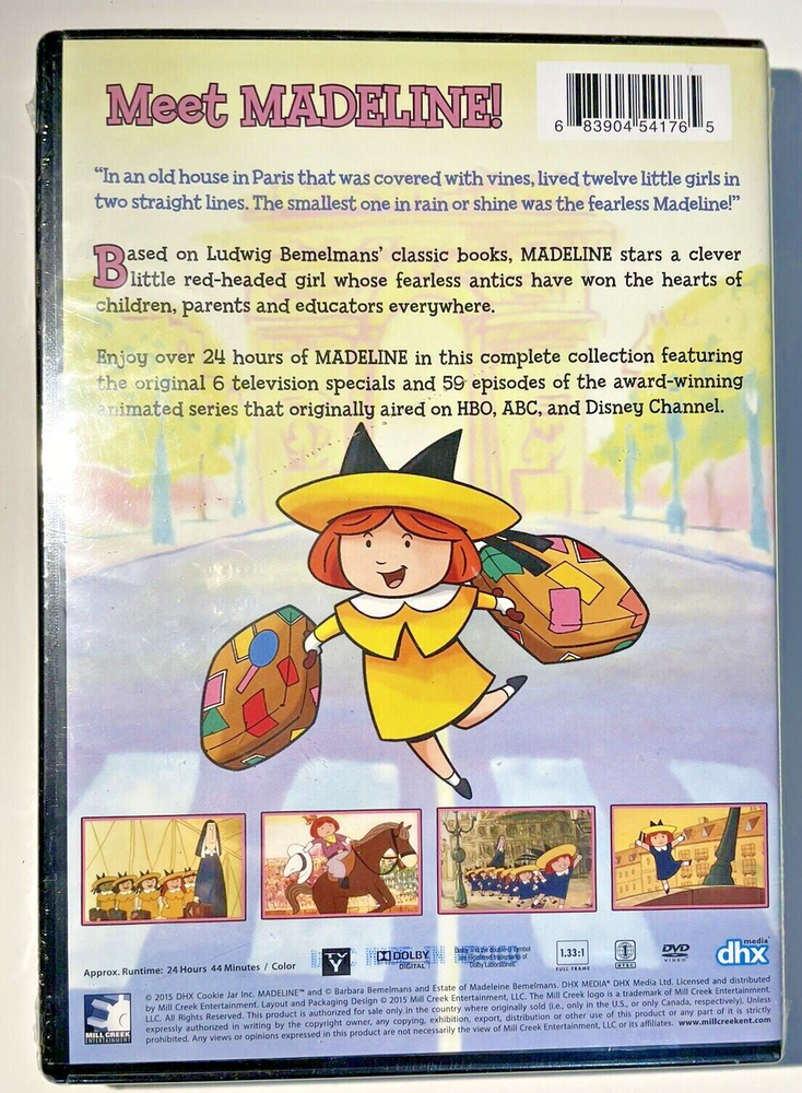Madeline: The Complete Animated Collection DVD Set (6 Discs) Description: Enjoy over 24 hours of Madeline in this complete collection featuring the original 6 television specials and all 59 episodes of the award-winning animated series that originally aired on HBO, ABC, and The Disney Channel. Based on Ludwig Bemelmans' classic books, Madeline stars a clever little red-headed girl whose fearless antics have won the hearts of children, parents, and educators everywhere. Product Info: This item is brand new and sealed. It is guaranteed to be the official U.S. edition released by Mill Creek. We source all of our product from reputable U.S. wholesale distributors/vendors and in many cases receive our product directly from the manufacturers. This is something we take very seriously, and we take pride in selling only authentic merchandise. Shipping: FREE economy Media Mail shipping will be used with this order. Additional shipping options are available through UPS or the Postal Service for individuals that wish to choose an affordable upgraded shipping service. Customer Service Questions & Returns: We read and reply to all questions and concerns and do our best to do so within 24 hours. While it is rare and highly unlikely, mistakes with orders or damage to items may occur. If you have an issue with anything that you have ordered, please contact us first and allow us to address the issue. Much like the pride we take in only selling authentic merchandise, we also take pride in our customer service and will do our best to make sure you are satisfied with your order.