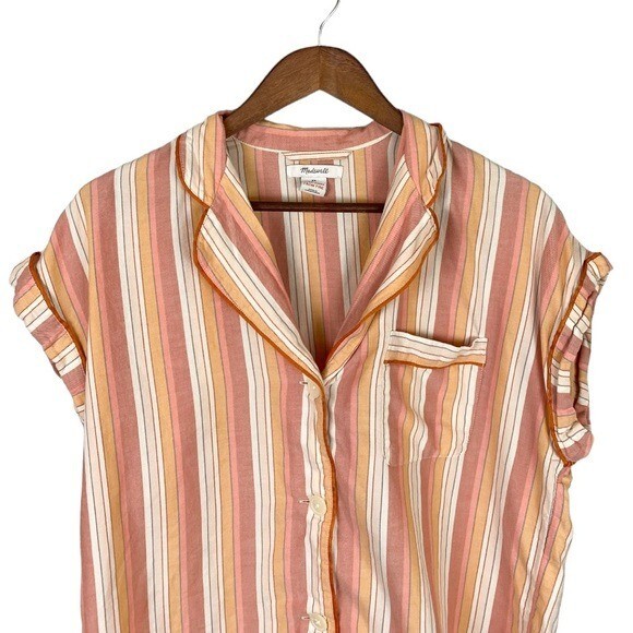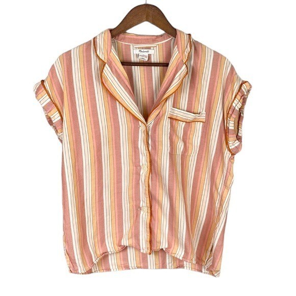 Madewell Bedtime Pajama Top in Rainbow Stripe Size XS - Gently used - Size XS - Multicolor - Striped - Button front - Cotton - Machine wash Measurements(Approximate): Chest: 38” Length: 22” casual women’s ladies misses daywear day wear weekend daytime everyday spring summer fall winter autumn top shirt #BL6