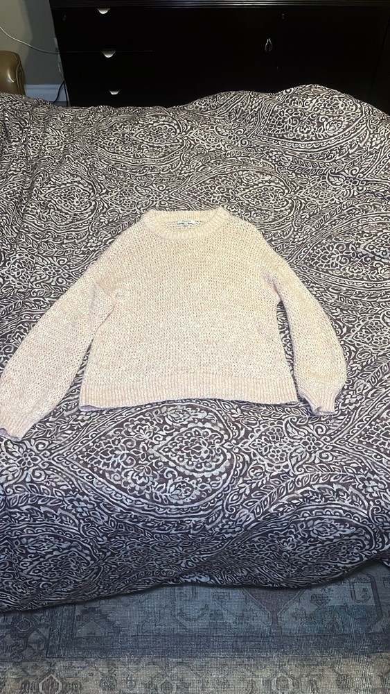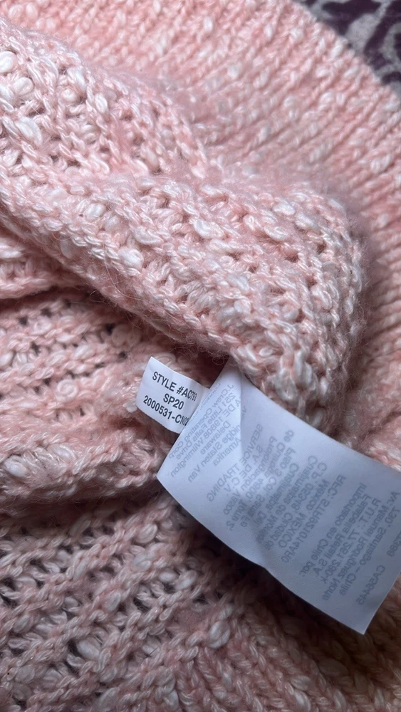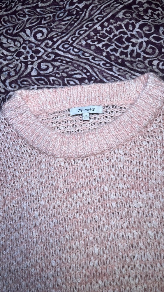 This Madewell Cozy Pink loose knitted sweater in size small is a stylish and comfortable addition to any woman's wardrobe. Made from knit fabric, this pullover sweater features a soft pink color that is perfect for adding a pop of color to any outfit. The loose knit design gives it a cozy and relaxed feel, making it a versatile piece that can be dressed up or down for any occasion. Perfect for layering in the cooler months, this sweater is a must-have for any fashion-forward woman.