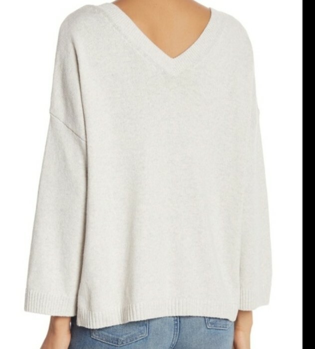 Madewell Double-V Pullover Heather Elm Size XL Long Sleeve Sweater Soft/Cozy NWT. Color is called Heather Ice, the colors are cream & gray, it is a heathered look. Length is 25in. -Double V front & back design -light weight knit construction -3/4 length dolman sleeves -Ribbed trim -Side slits NWT, Never worn, no holes, no stains. 79$ retail