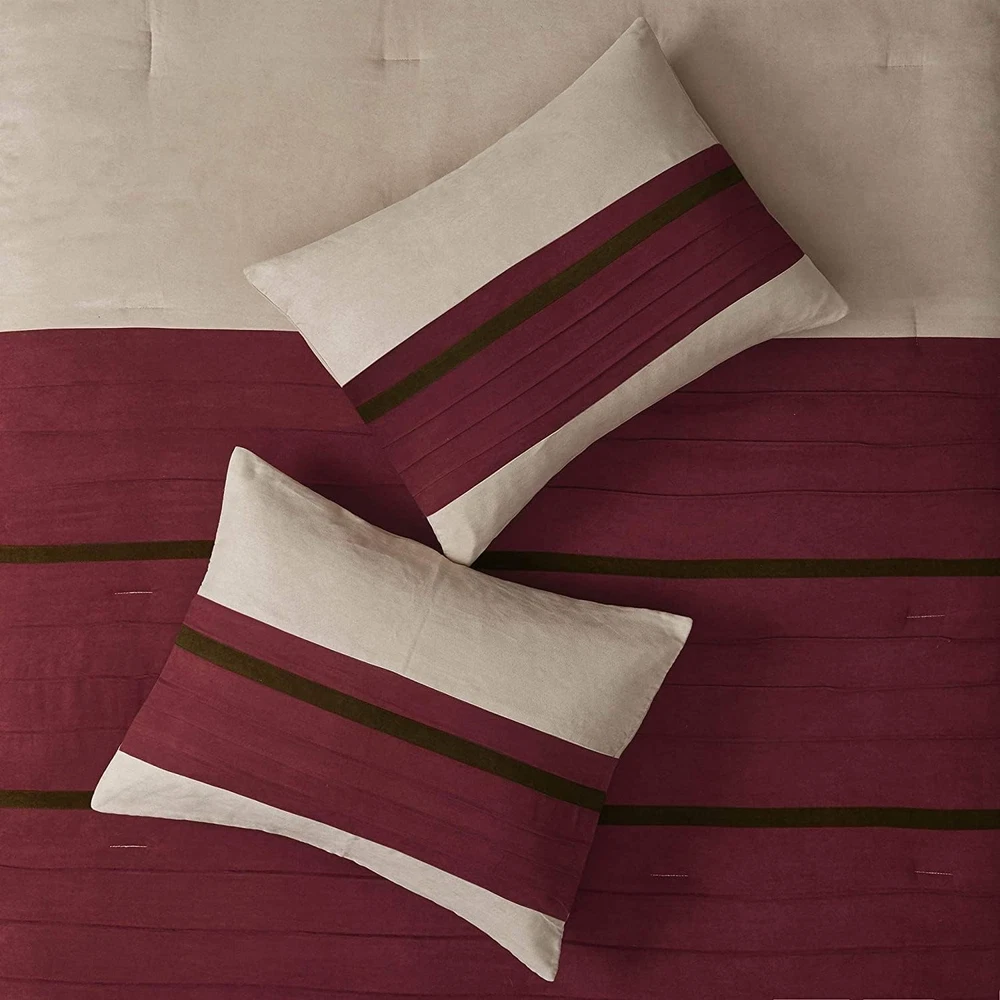 This Madison Park comforter set is pure luxury at an amazing value! The deep red striped design adds rich warmth to any bedroom, and the ultra-soft fabric feels incredible. Love that it includes pillows and shams for a complete look—California King size fits my bed perfectly. Even as open box, the quality is flawless—no signs of use at all. Super plush yet breathable for all-season comfort. Definitely exceeded my expectations while saving me money!