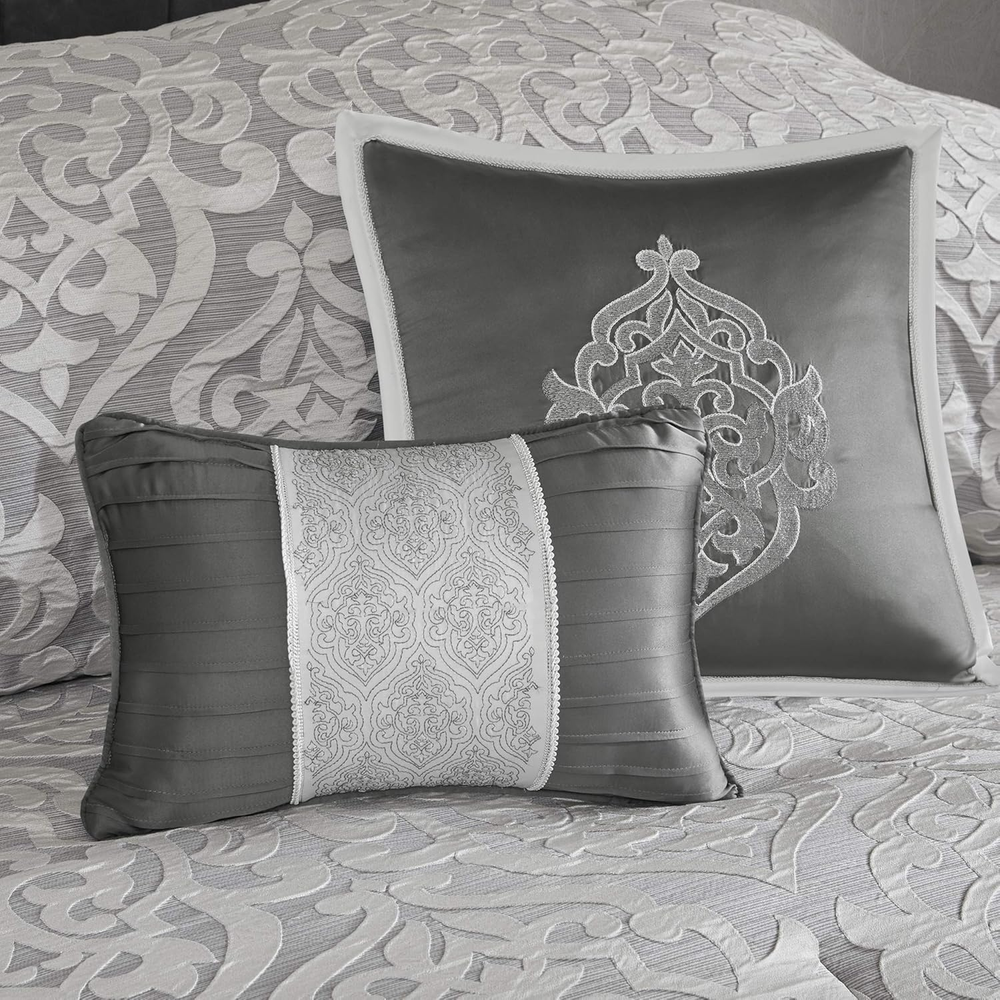 This comforter set is absolutely stunning—the Jacquard damask medallion design adds a touch of elegant luxury to any bedroom. The fabric is soft yet durable, and the silver color gives it a clean, modern look. The 8-piece set includes everything to style your bed beautifully, and the down-alternative filling keeps you cozy without being too heavy. Perfect for all seasons, and the quality feels high-end. Love how plush and inviting it makes the room! Definitely worth it.