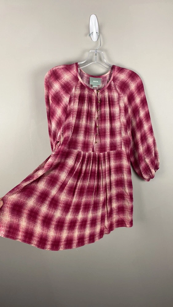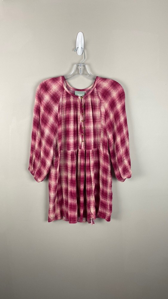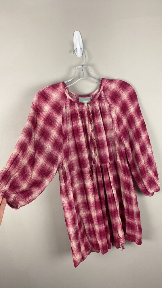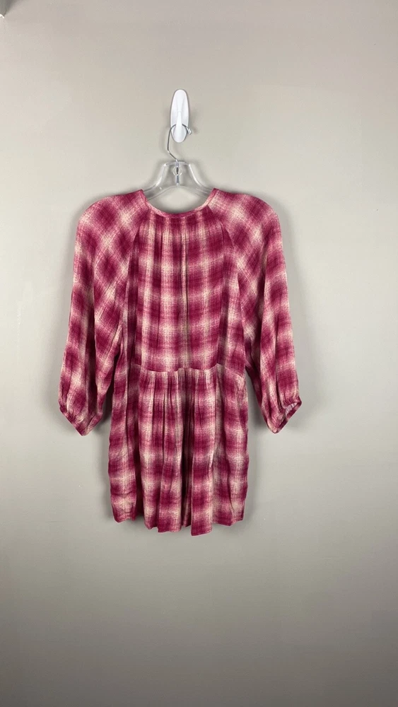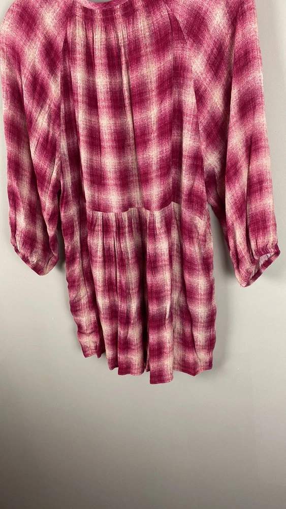 Measurements: Pit to pit - approx 20” Length - approx 30” Color: Pink and Red/ Pinkish Red Red Cavalin Peplum Plaid Tunic Top Babydoll baby doll Round neck Swing Elastic sleeve ends