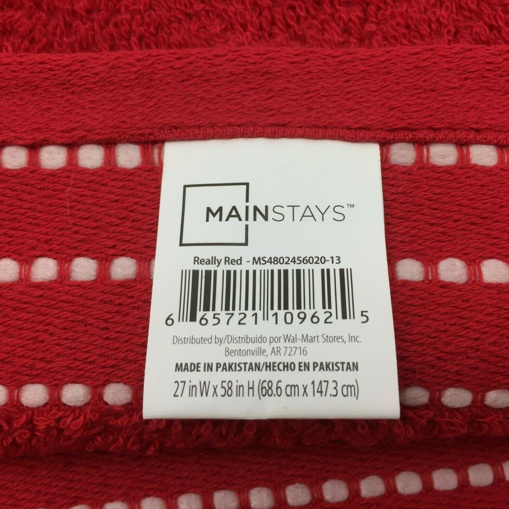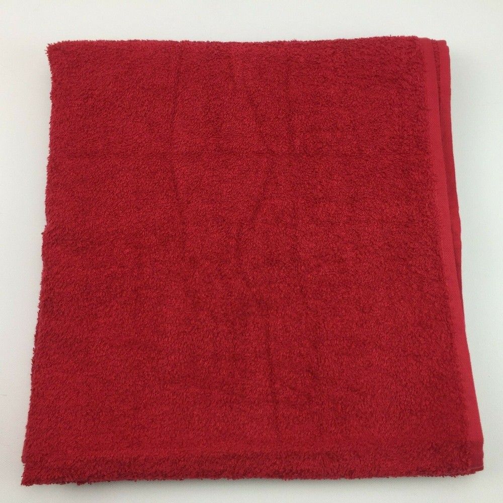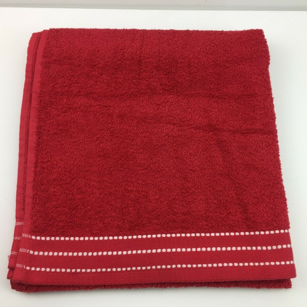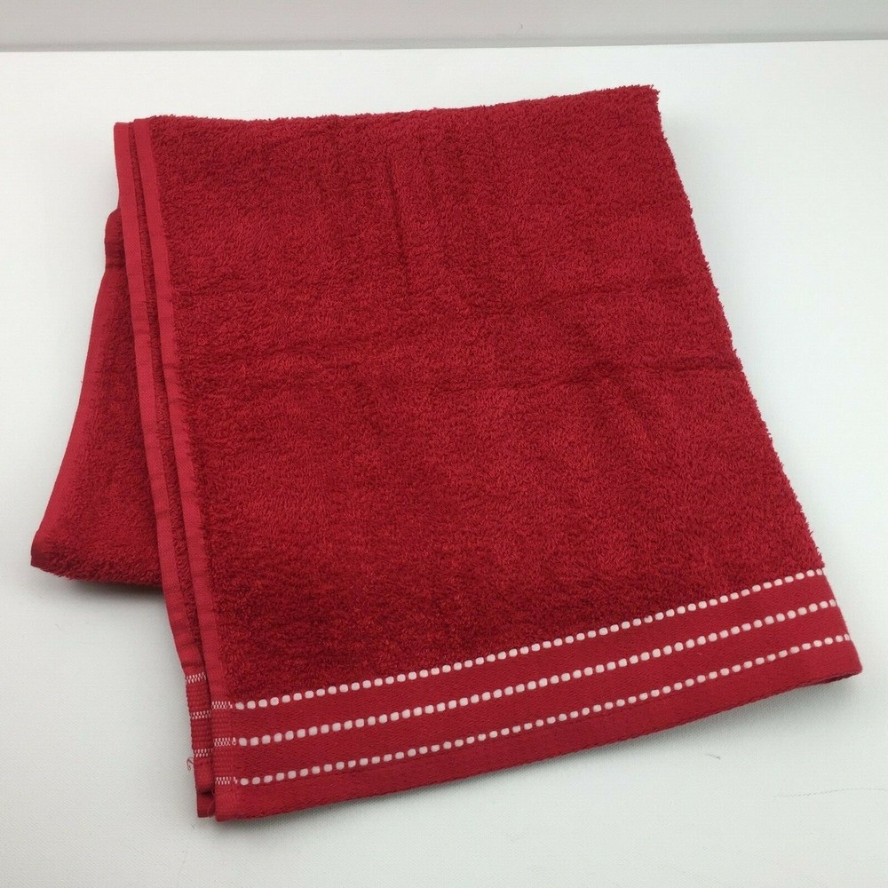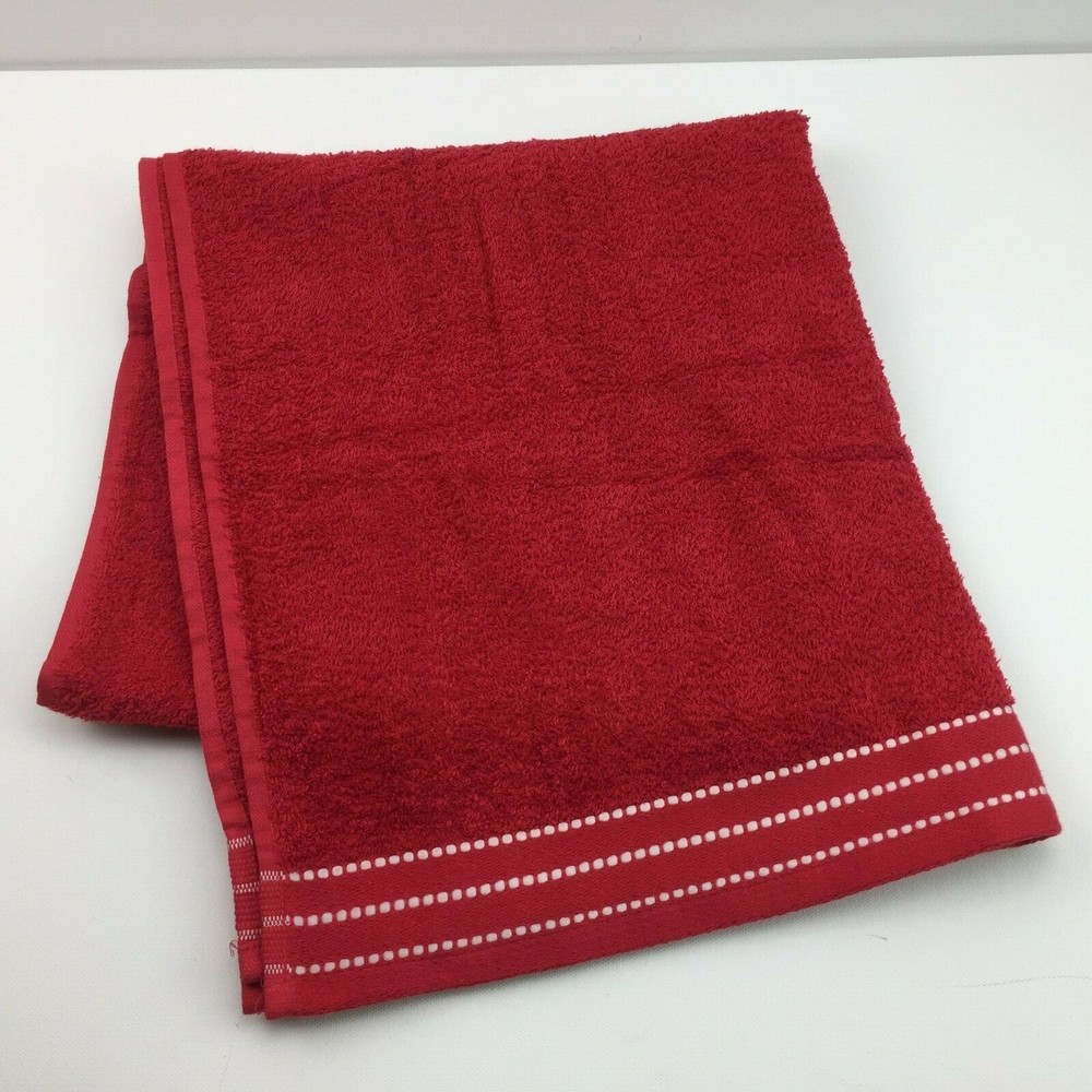 Main Stays Really Red Bath Linen Towel White Stitching 27in x 58in...
