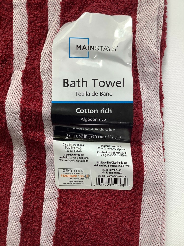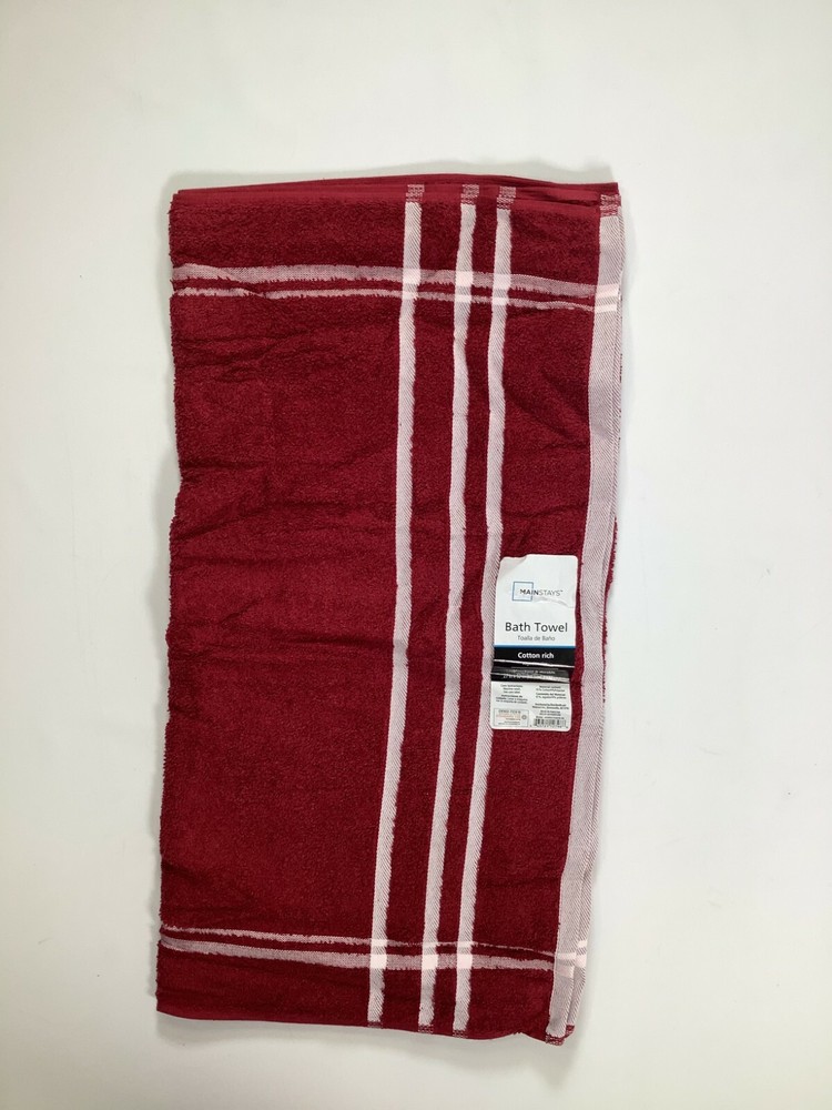 MainStays Merlot Striped Cotton Rich Bath Towel 27x52 NEW! NWT MainStays Merlot Striped Cotton Rich Bath Towel 27x52 NEW! New With Tags. WH664-665/A2834 *Actual measurements may vary slightly, please message us if you'd like us to remeasure or clarify condition. Some of our items are gently used, please check all photos for condition description. Best Offer: We will happily entertain any offer on any item. We don't have the ability to edit shipping charges when listings are live, so please make your offer inclusive of our flat rate shipping & handling charge. Returns & Restocking Fee: Please try on all clothing items as soon as you get it to ensure proper fit. We will waive our 20% restocking fee if the item is returned within 7 days of receipt for any reason. We stand behind our products 100% with a money back guarantee. All of our pre-owned clothings is from a pet and smoke free home. Bid with confidence. All new items must be returned in sealed, unused condition, or with tags still attached. Customer Service: Please contact us first if you have any questions or concerns regarding your purchase after receipt. We will typically respond within a few hours. Please Read! Payment Shipping Returns *Actual measurements may vary slightly, please message us if you'd like us to remeasure or clarify condition. Some of our items are gently used, please check all photos for condition description.* Best Offer: We will happily entertain any offer on any item. We don't have the ability to edit shipping charges when listings are live, so please make your offer inclusive of our flat rate shipping & handling charge. Returns & Restocking Fee: Please try on all clothing items as soon as you get it to ensure proper fit. We will waive our 20% restocking fee if the item is returned within 7 days of receipt for any reason. We stand behind our products 100% with a money back guarantee. All of our pre-owned clothing is from a pet and smoke free home. Bid with confidence. All new items must be returned in sealed, unused condition, or with tags still attached. Payment information goes here PayPal is the preferred payment method. We ship every day Monday - Friday. Accept returns within 30 days. Total Fresh Yellow Cotton Bath Towel 30x54 2 Pack Shop $19.99 Signature Collection Sand Bath Towel 30x54 NEW! NWT Shop $12.99 Celebrate America Together Red White Blue Flag Beach Towel EUC Shop $14.99 eBay listing template by 3D sellers.com - Try for Free!