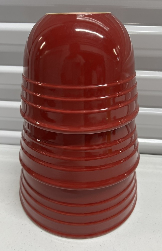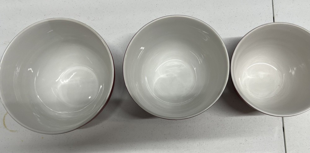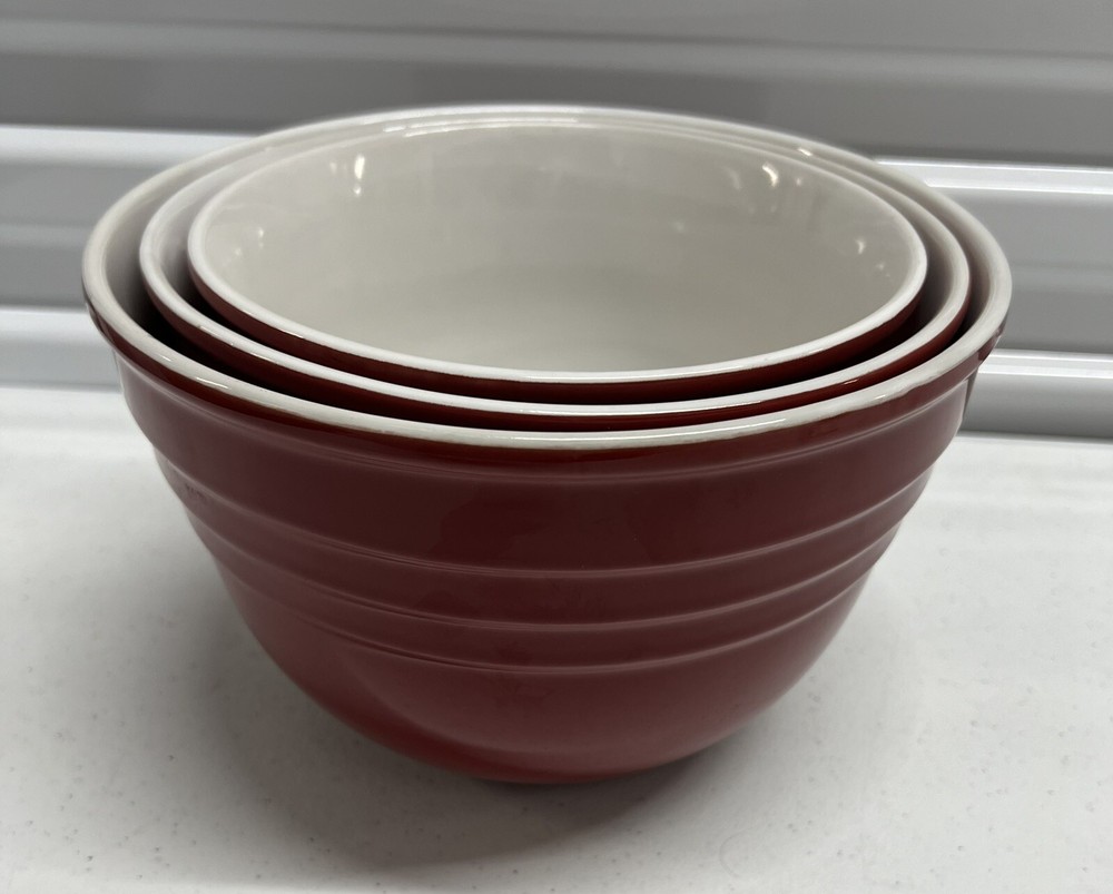 Mainstay Dark Red, Ceramic All Purpose Nesting Mixing Bowls - Set of 3 - excellent condition! Doubt if the biggest one was ever used.