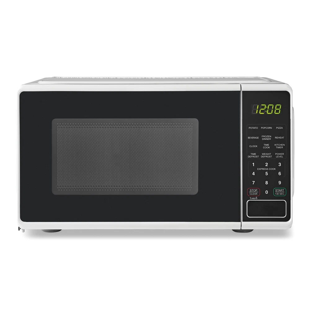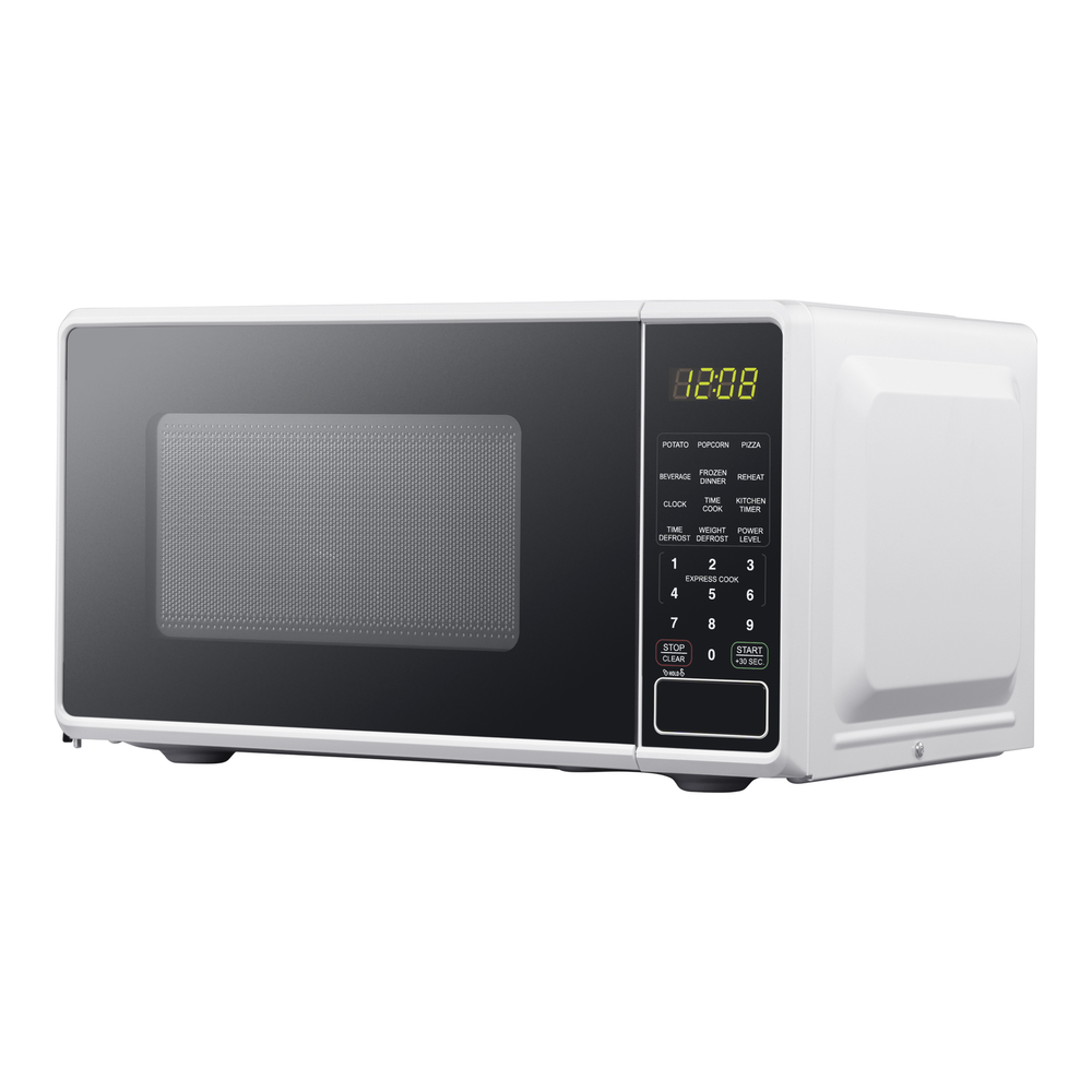 No features description available Mainstays 0.7 Cu ft 700-Watt Countertop Microwave Oven is available in 3 colors including Black, Red or White. Each color is designed to complement your kitchen, dorm room, office or rec room. Features include LED display, kitchen timer & clock, 10 different power levels for cooking a variety of foods, weight & time defrost, 6 convenient quick-set menu buttons, 30 second one-touch option, child safety lockout and a push-button door. The Mainstays 0.7 Cu ft 700-Watt Countertop Microwave Oven is the perfect addition to any home. Mainstays 0.7 Cu ft Microwave Oven, White Capacity 0.7 Cu ft 700-Watt Power LED display Kitchen timer & clock 10 Power levels Weight & time defrost 6 Quick-set menu buttons 30 Second one-touch option Child-safe lockout Push-button door opening