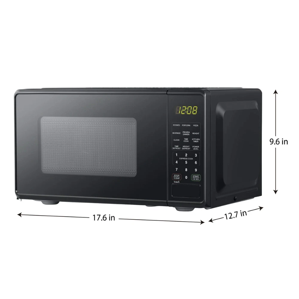 Mainstays 0.7 Cu ft 700-Watt Compact Countertop Microwave Oven - Black, Red, or White Condition: New Stock Number: MS8436127995-01 Description: Upgrade your kitchen with the Mainstays 0.7 Cu ft Microwave Oven, perfect for dorm rooms, offices, or any compact space. Available in three stylish colors: Black, Red, or White. Features: LED Display: Easy-to-read settings Kitchen Timer & Clock: Keep track of cooking times 10 Power Levels: Versatile cooking options Weight & Time Defrost: Convenient for various foods 6 Quick-Set Menu Buttons: Pre-programmed settings for easy use 30 Second One-Touch Option: Quick start for heating Child-Safe Lockout: Ensures safety in homes with children Push-Button Door Opening: Easy access Capacity: 0.7 Cu ft Power: 700 Watts