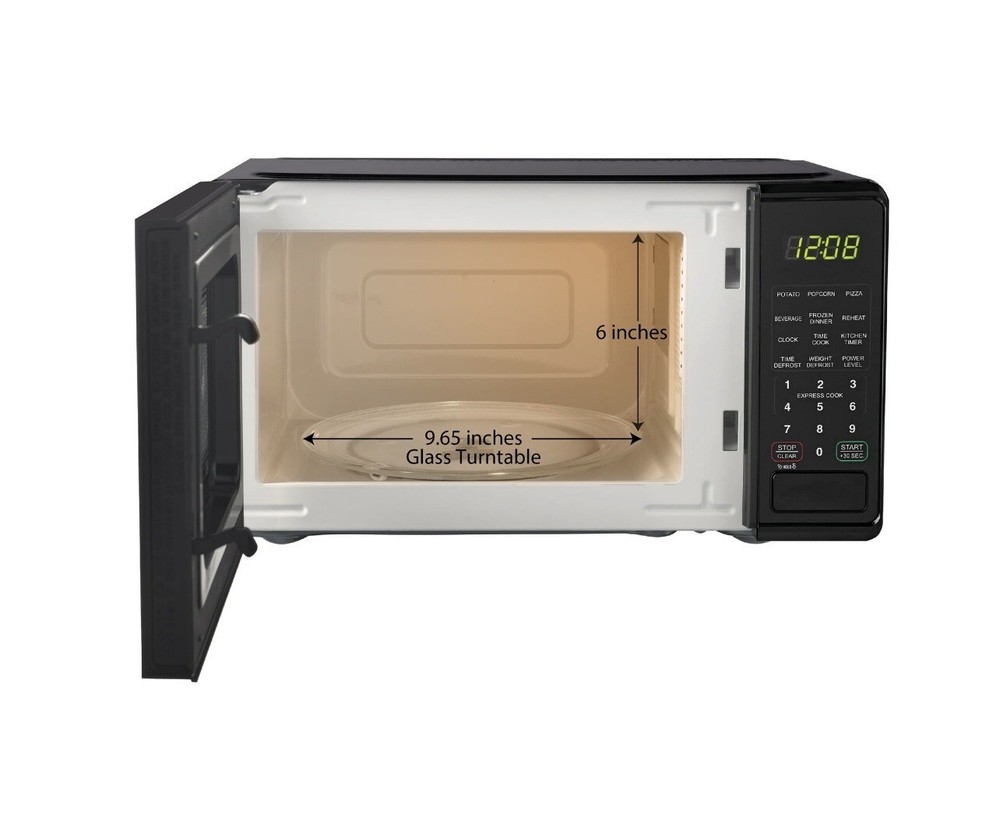 Discover the Mainstays 0.7 Cu ft 700-Watt Compact Countertop Microwave Oven in Black, Red, or White. Enhance your kitchen, dorm room, office, or rec room with its sleek design. Enjoy features like LED display, kitchen timer & clock, 10 power levels, weight & time defrost, quick-set menu buttons, 30-second one-touch option, child safety lockout, and push-button door. This new Mainstays microwave is a must-have for any home.