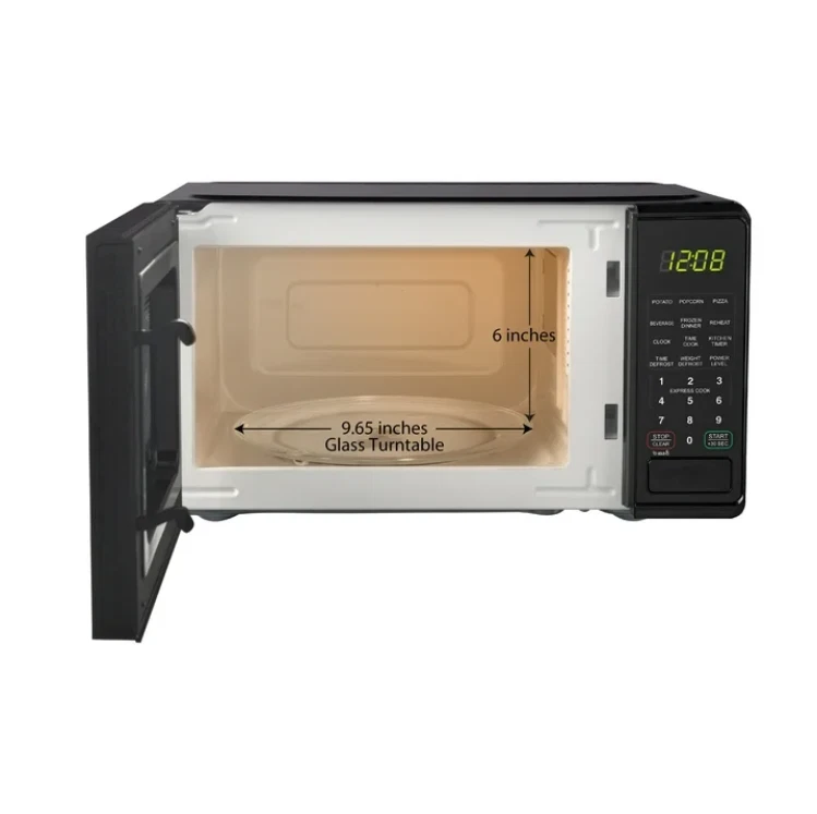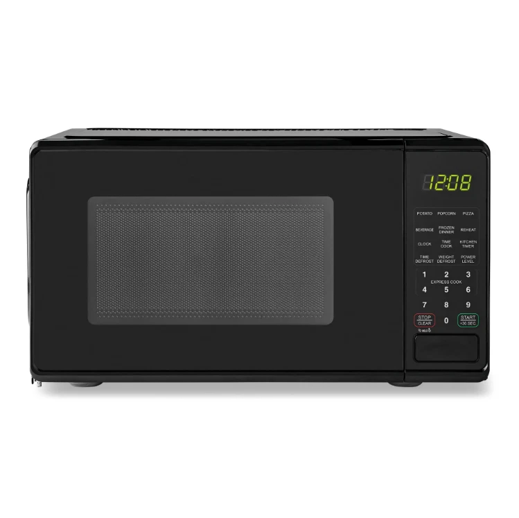 Product details The Mainstays 0.7 Cu ft 700-Watt Compact Countertop Microwave Oven is available in three colors including Black, Red or White. Each color is designed to complement your kitchen, dorm room, office or rec room. Features include LED display, kitchen timer and clock, six convenient quick-set menu buttons, 10 different power levels for cooking a variety of foods, child safety lockout, weight and time defrost and a 30 second one-touch option. The Mainstays 0.7 Cu ft 700-Watt Compact Countertop Microwave Oven is the perfect addition to any home. (Condition: New. Stock Number: MSF0B100072352.) Build your kitchen from the ground up with all the cookware, bakeware, tools, dinnerware and other items you need to create a useful cooking and dining arrangement. The Mainstays kitchen collection focuses on colorful and decorative design applied to simple basics, keeping your daily life vibrant and efficient. This category includes such a wide variety of products that you may want to make a list of the kitchen items you need and use the product filters on the left side of the page to browse more efficiently. This way, you'll get to see all the relevant Mainstays kitchen products in each subcategory to find the best match for your lifestyle. Mainstays 0.7 cu. ft. Countertop Microwave Oven, 700 Watts, Black, New Capacity 0.7 Cu ft 700-Watt Power LED display Kitchen timer & clock 10 Power levels Weight & time defrost 6 Quick-set menu buttons 30 Second one-touch option Child-safe lockout Push-button door opening Condition: New Stock Number: MSF0B100072352